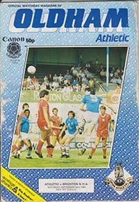 Match: Oldham Athletic v Brighton and Hove Albion Competition: League Division 2 Date: 22-09-1984 Comments: Rating: 2 Condition: Grubby Weight in grams: 100