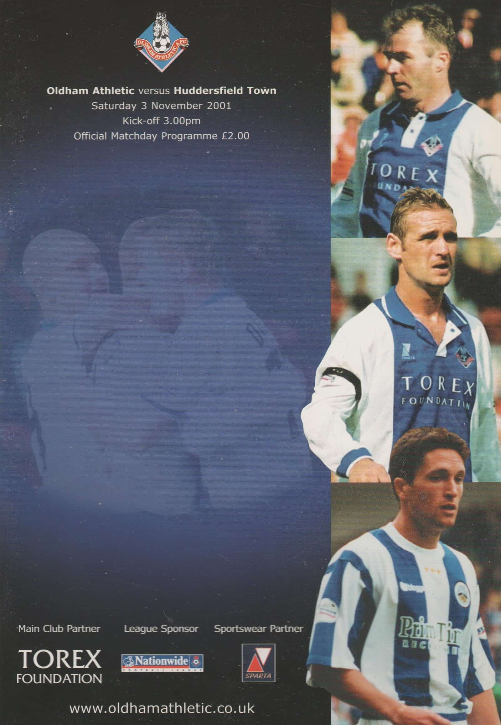 Match: Oldham Athletic v Huddersfield Town Competition: League Division 2 Date: 03-Nov-2001 Comments: Rating: 4 Condition: Very good Weight in grams: 100