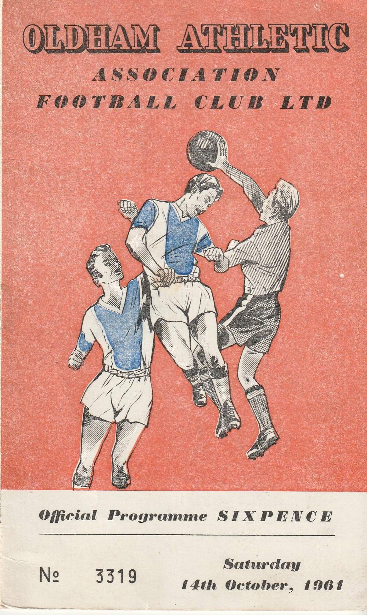Match: Oldham Athletic v Rochdale Competition: League Division 4 Date: 14-Oct-1961 Comments: Rating: 4 Condition: Very good Weight in grams: 60