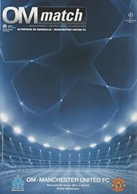Match: Olympique Marseille v Manchester United Competition: Champions League Round of 16 Date: 23-02-2011 Comments: Rating: 5 Condition: Excellent Weight in grams: 80