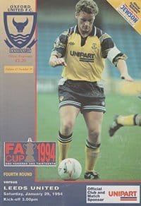 Match: Oxford United v Leeds United Competition: FA Cup 4th Round Date: 29-01-1994 Comments: Rating: 4 Condition: Very good Weight in grams: 80