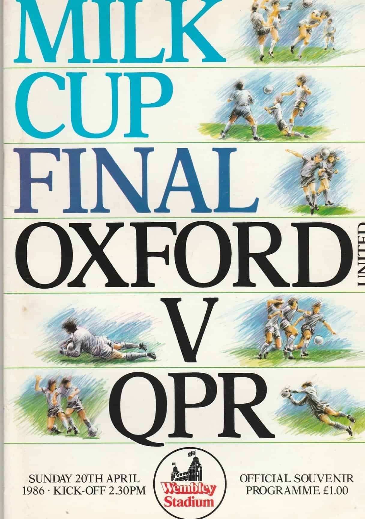 Match: Oxford United v Queens Park Rangers Competition: Milk Cup Final at Wembley Date: 20-04-1986 Comments: a4 edition Rating: 5 Condition: Excellent Weight in grams: 330