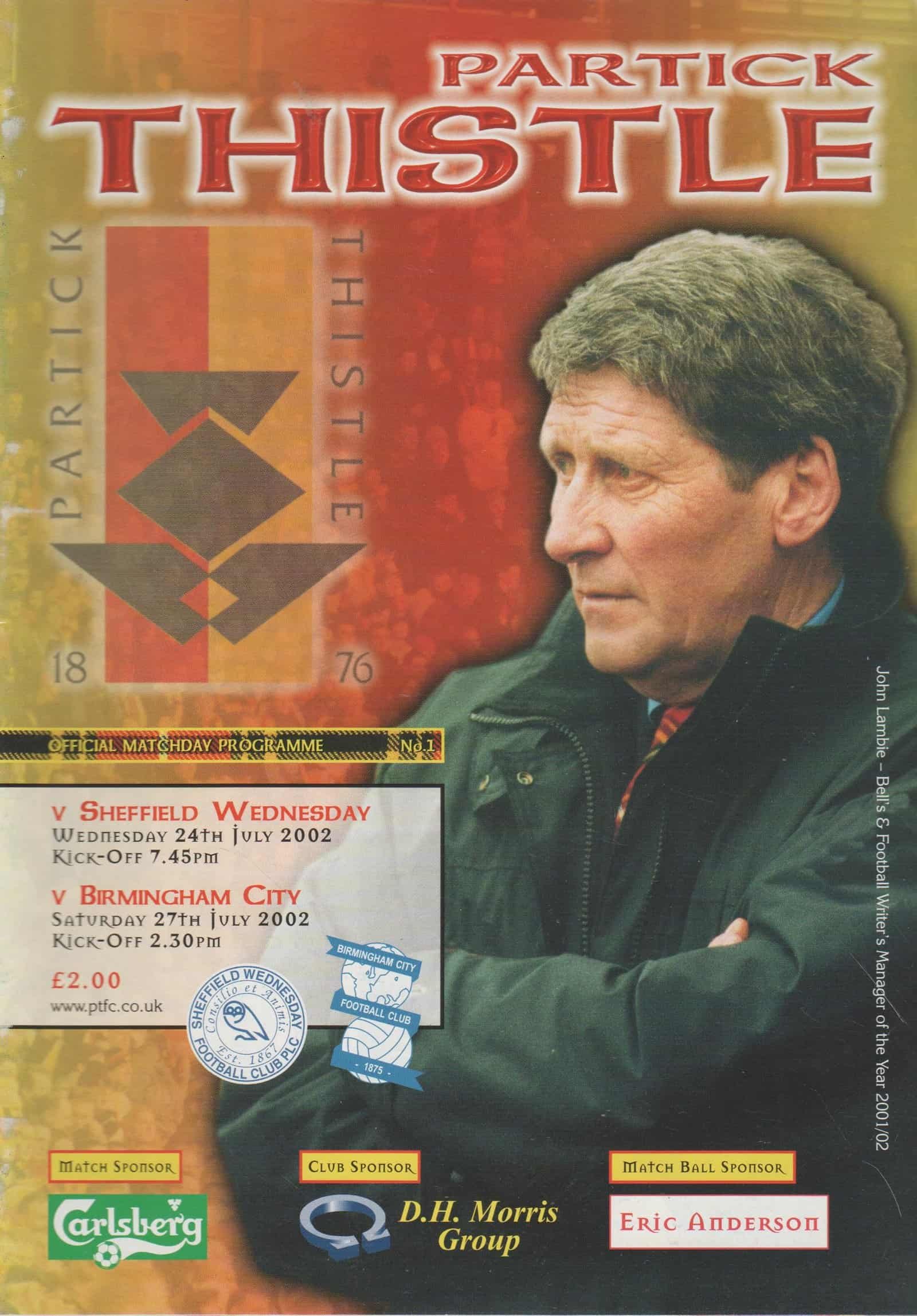 Match: Partick Thistle v Birmingham City Competition: Friendly Date: 27-Jul-2002 Comments: Joint issue for Sheffield Wednesday game Rating: 4 Condition: Very good Weight in grams: 120