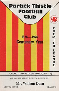 Match: Partick Thistle v Heart of Midlothian Competition: Scottish Premier League Date: 26-03-1977 Comments: Rating: 4 Condition: Very good Weight in grams: 40