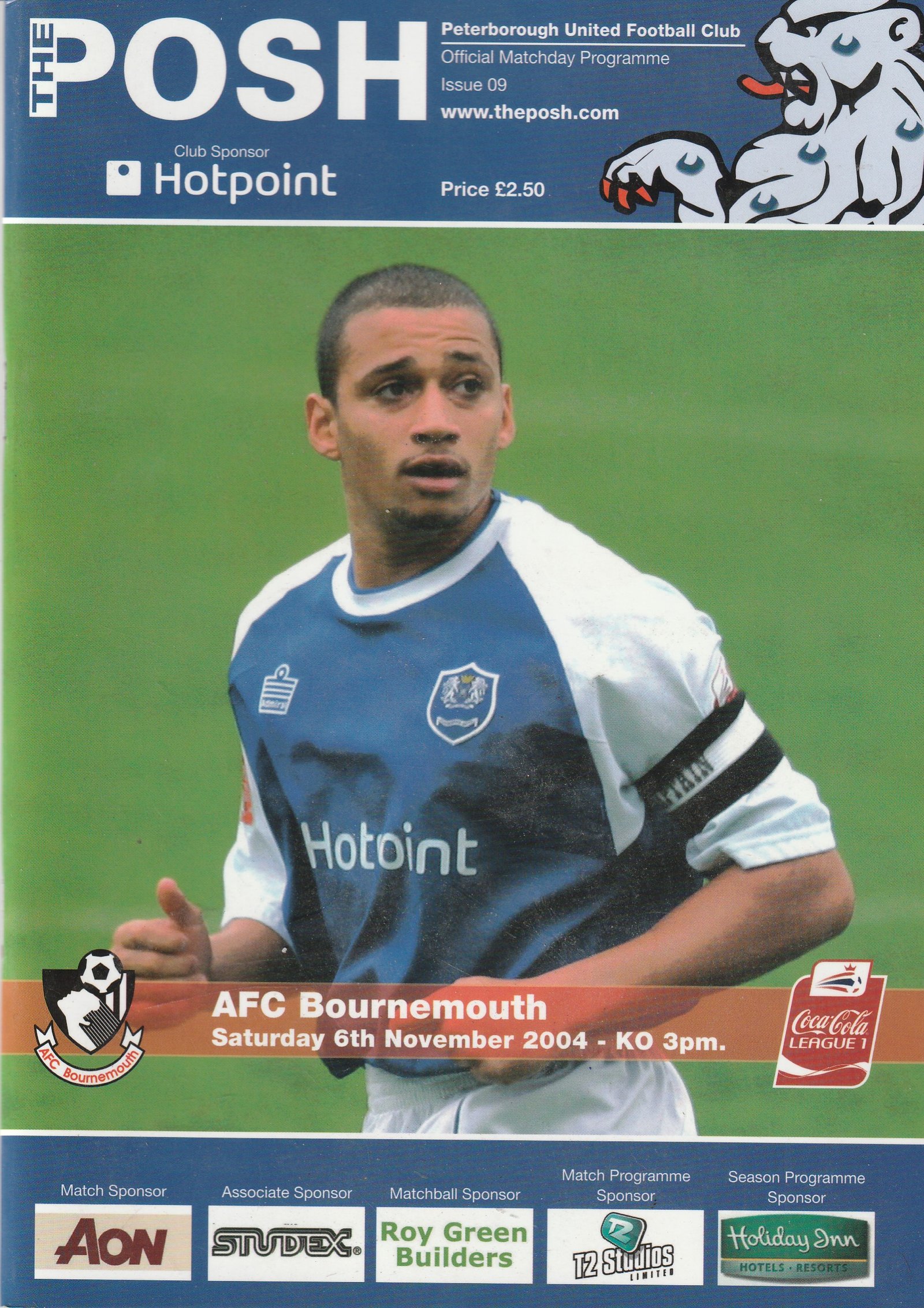 Match: Peterborough United v AFC Bournemouth Competition: League 1 Date: 06-Nov-2004 Comments: Rating: 4 Condition: Very good Weight in grams: 200