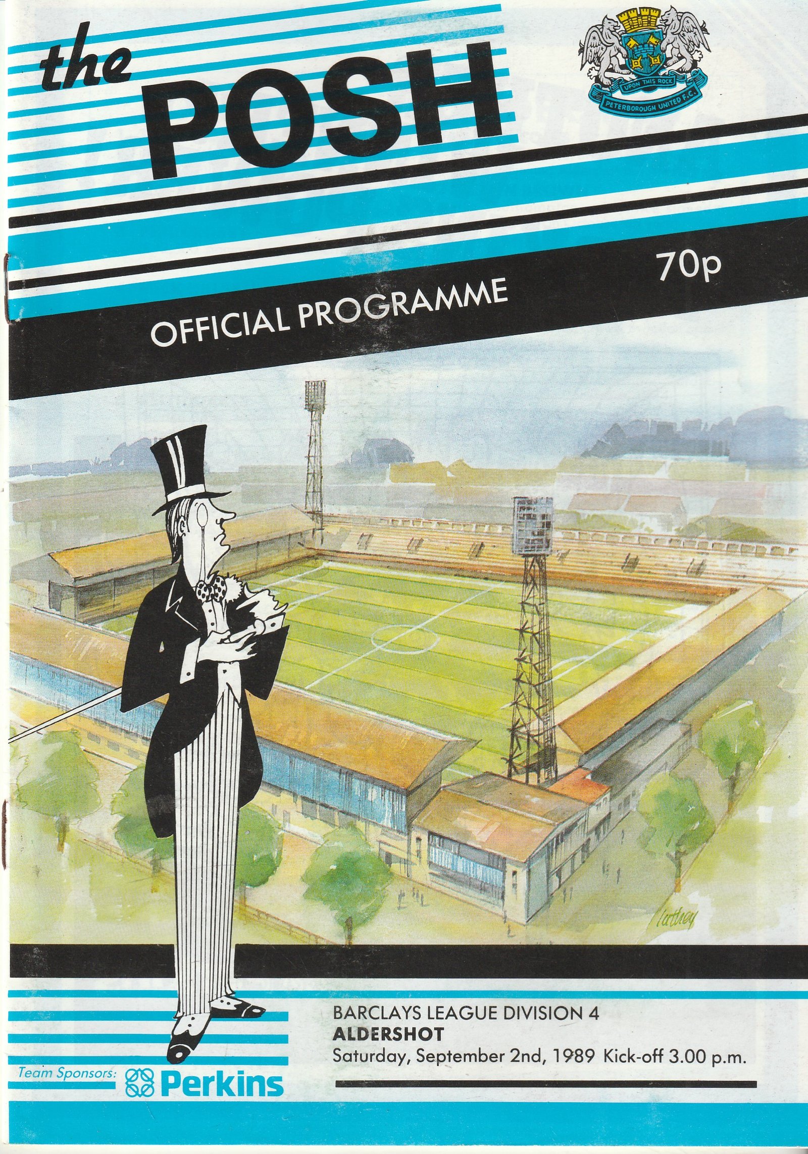 Match: Peterborough United v Aldershot Competition: League Division 4 Date: 02-Sep1989 Comments: Rating: 4 Condition: Very Good Weight in grams: 120