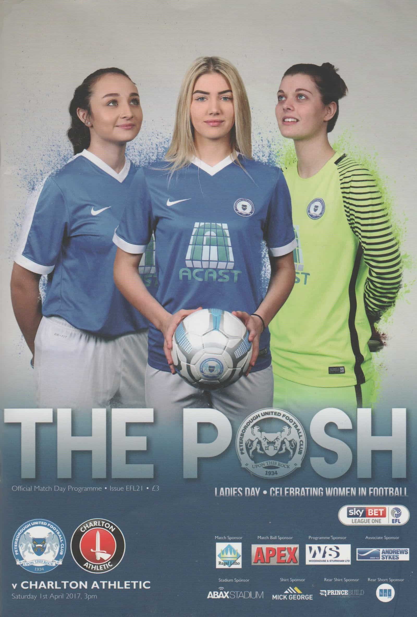 Match: Peterborough United v Charlton Athletic Competition: League 1 Date: 01-Apr-2017 Comments: Rating: 3 Condition: Water damage on back page and inside back page Weight in grams: 160