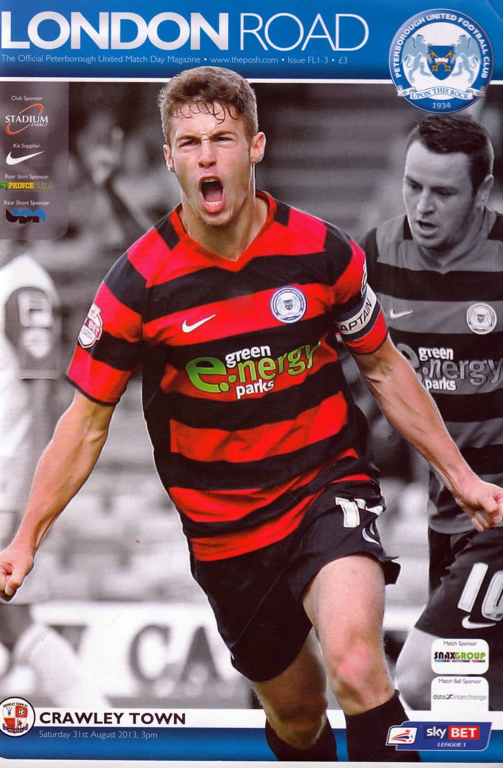 Match: Peterborough United v Crawley Town Competition: League 1 Date: 31-Aug-2013 Comments: Rating: 4 Condition: Very good Weight in grams: 260