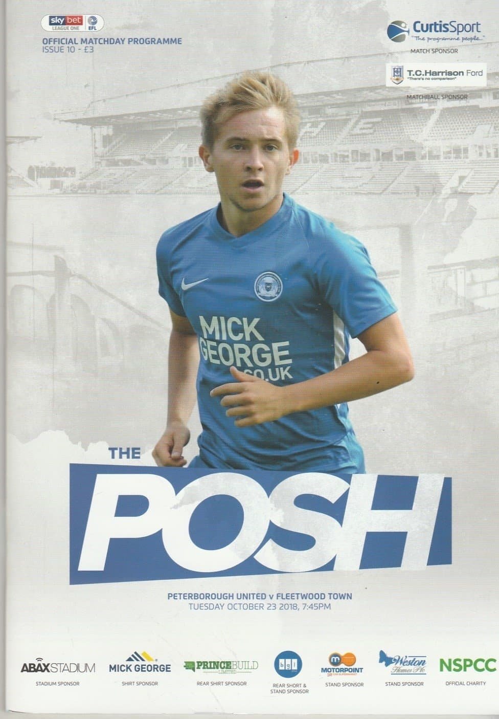 Match: Peterborough United v Fleetwood Town Competition: League 1 Date: 23-Oct-2018 Comments: Rating: 4 Condition: Very good Weight in grams: 200