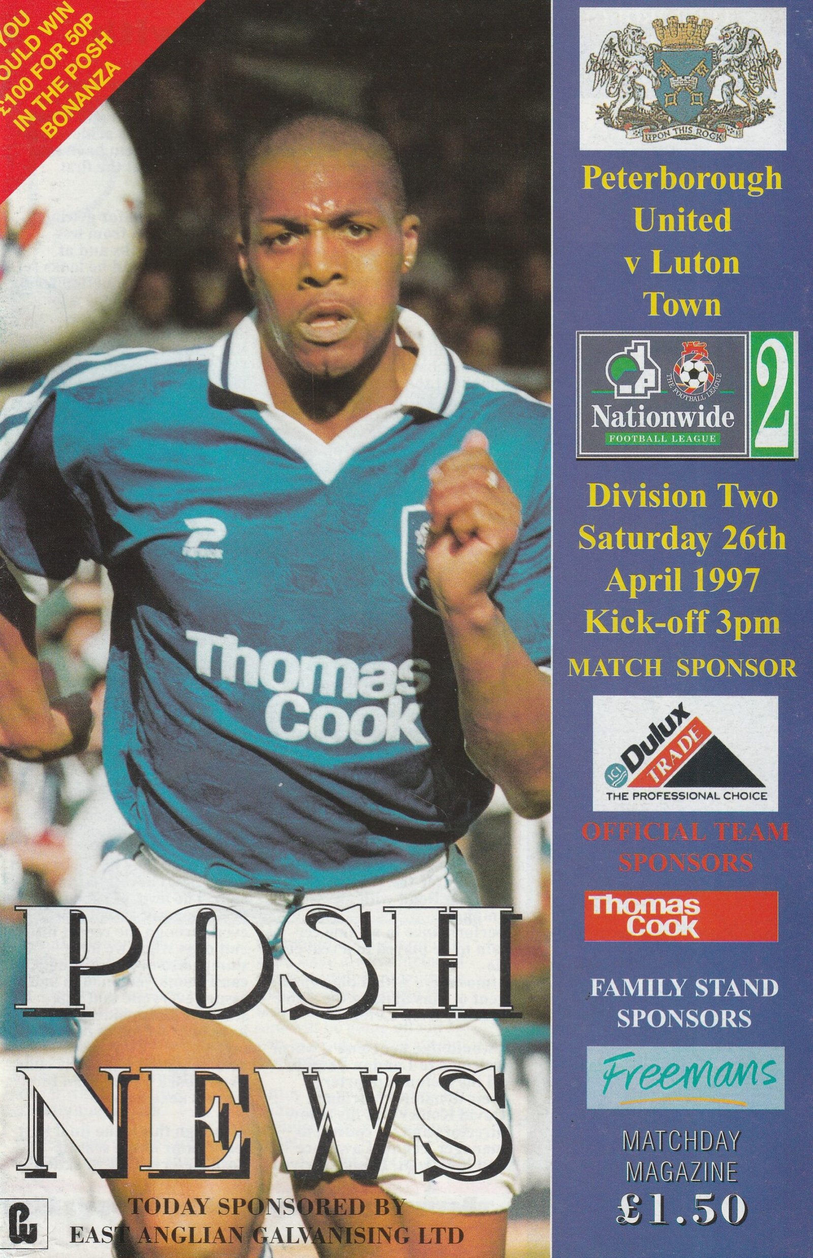 Match: Peterborough United v Luton Town Competition: League Division 2 Date: 26-Apr-1997 Comments: Rating: 4 Condition: Good Weight in grams: 120