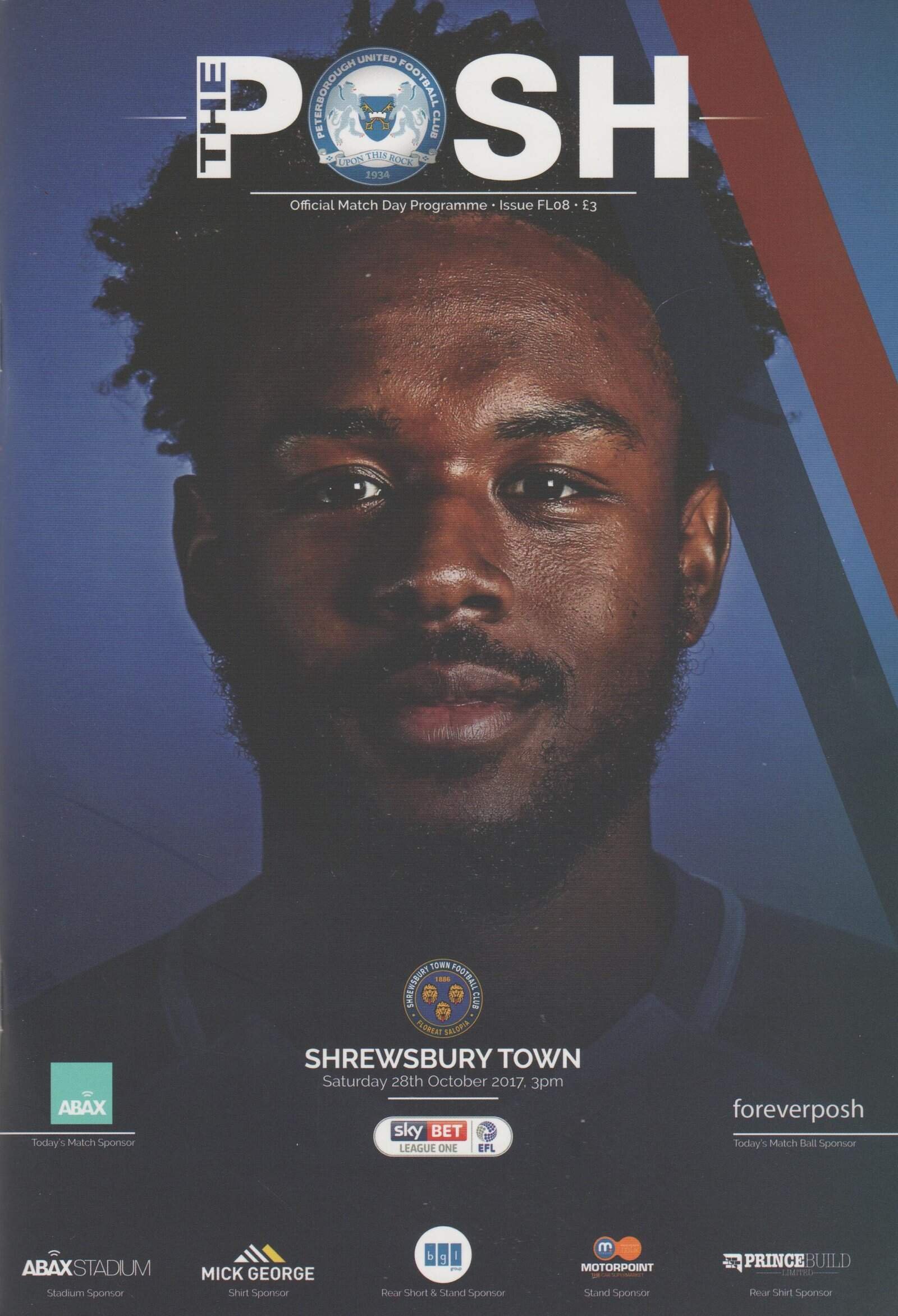 Match: Peterborough United v Shrewsbury Town Competition: League 1 Date: 28-Oct-2017 Comments: Rating: 4 Condition: Very good Weight in grams: 160