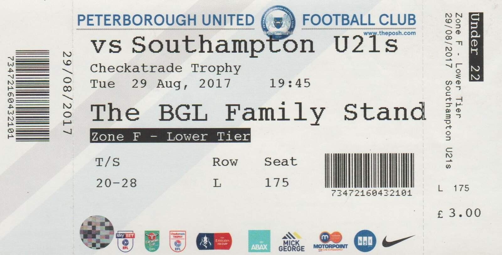 Match: Peterborough United v Southampton u21