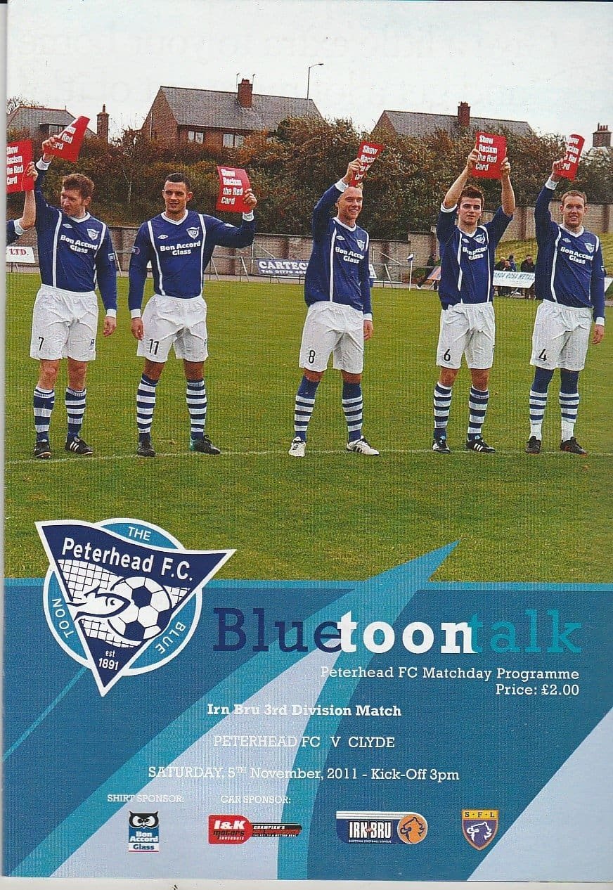 Match: Peterhead v Clyde Competition: Irn Bru League Division 3 Date: 05-Nov-2011 Comments: Rating: 4 Condition: Very good Weight in grams: 120