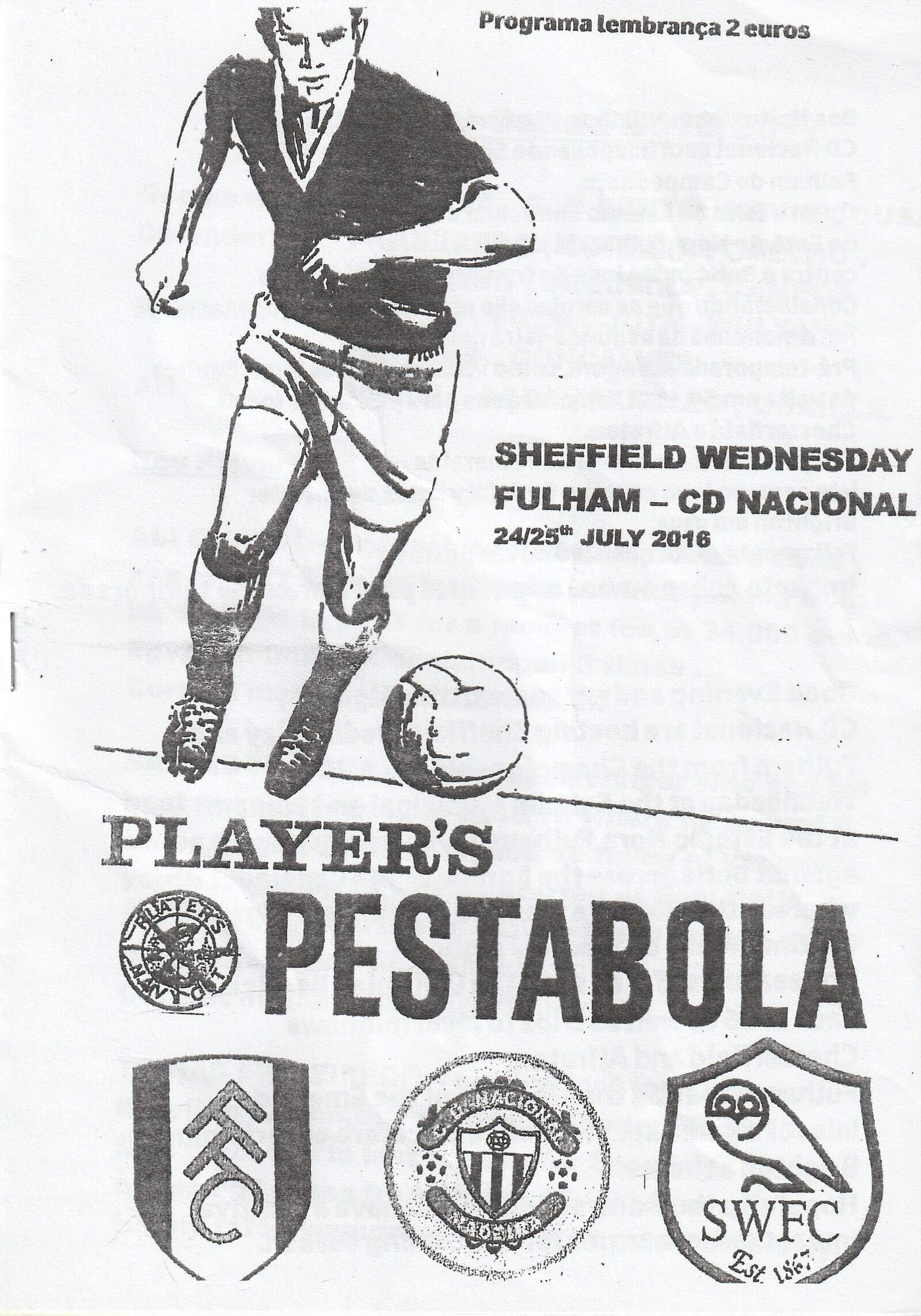 Match: Player’s Pestabola Tournament 2016 Competition: Friendly Date: 24/25-Jul-2016 Comments: Pirate issue, tournament featuring Sheffield Wednesday, Fulham, CD Nacional Rating: 3 Condition: Light creases Weight in grams: 60