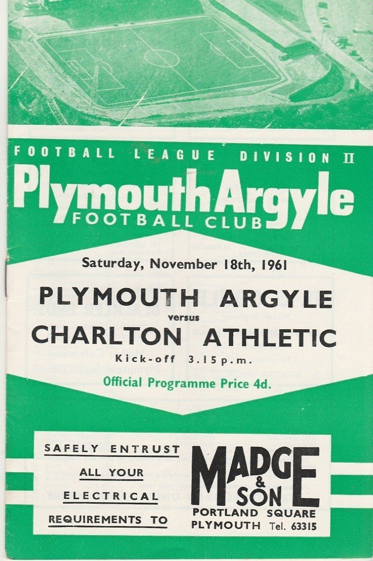 Match: Plymouth Argyle v Charlton Athletic Competition: League Division 2 Date: 18-Nov-1961 Comments: Rating: 4 Condition: Faint fold Weight in grams: 40