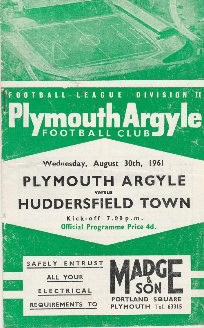 Match: Plymouth Argyle v Huddersfield Town Competition: League Division 2 Date: 30-Aug-1961 Comments: Rating: 3 Condition: Fold, marks on back Weight in grams: 40