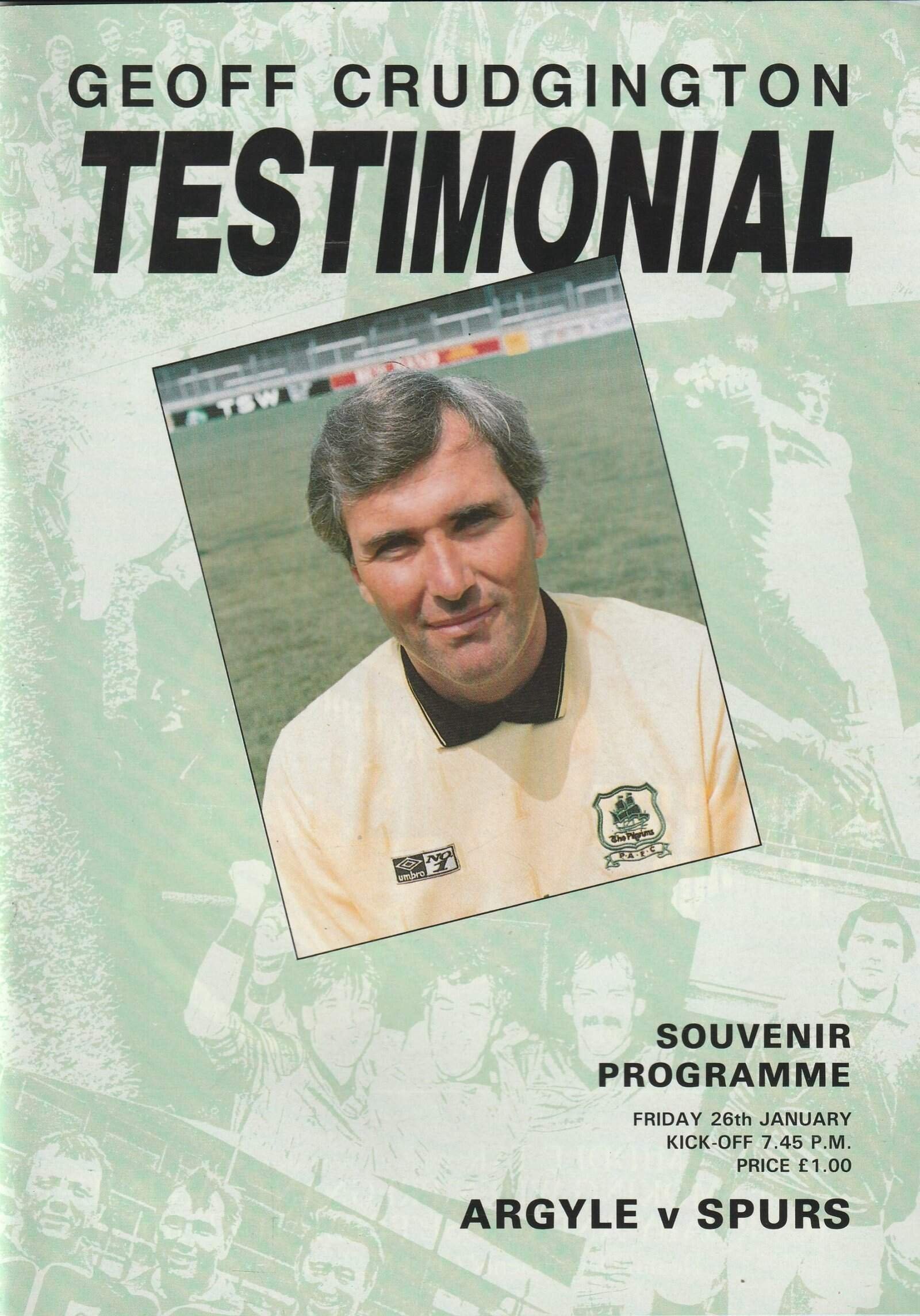 Match: Plymouth Argyle v Tottenham Hotspur Competition: Friendly Date: 26-Jan-1988 Comments: Geoff Crudgington Testimonial Match Rating: 4 Condition: Very Good Weight in grams: 200