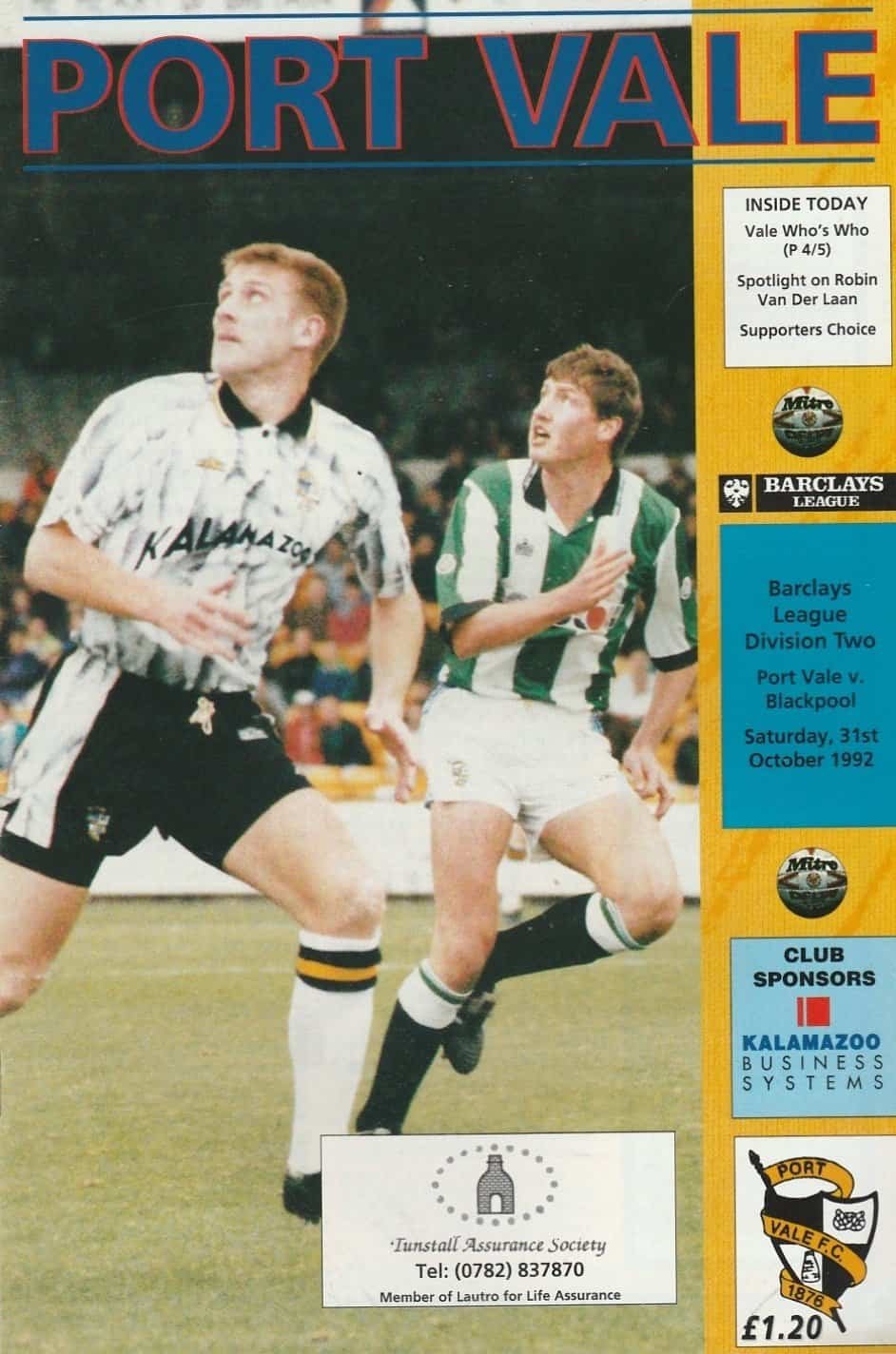 Match: Port Vale v Blackpool Competition: League Division 2 Date: 31-Oct-1992 Comments: Rating: 4 Condition: Very good Weight in grams: 120