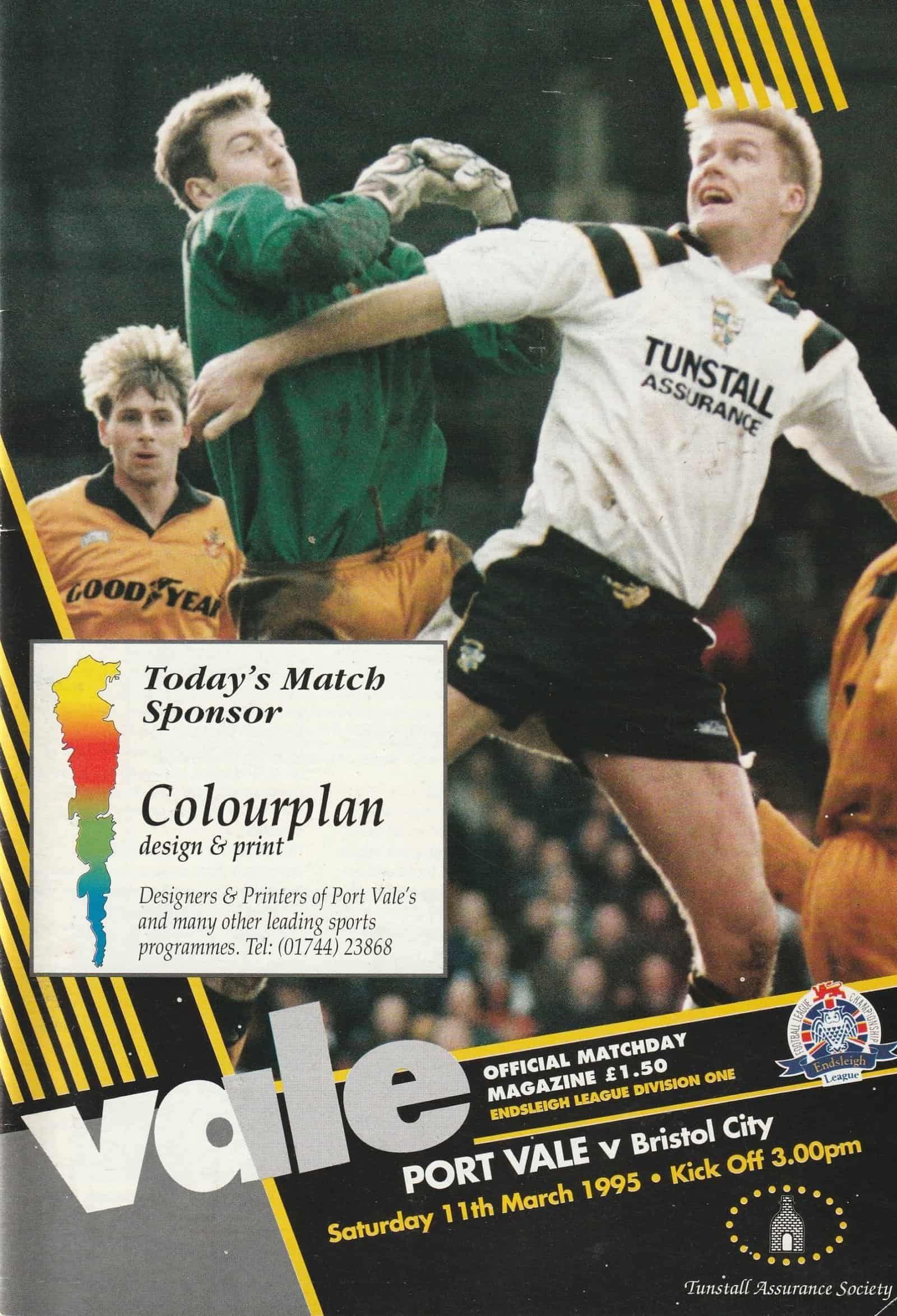 Match: Port Vale v Bristol City Competition: League Division 1 Date: 11-Mar-1995 Comments: Rating: 4 Condition: Faint fold on corner tip of cover Weight in grams: 120