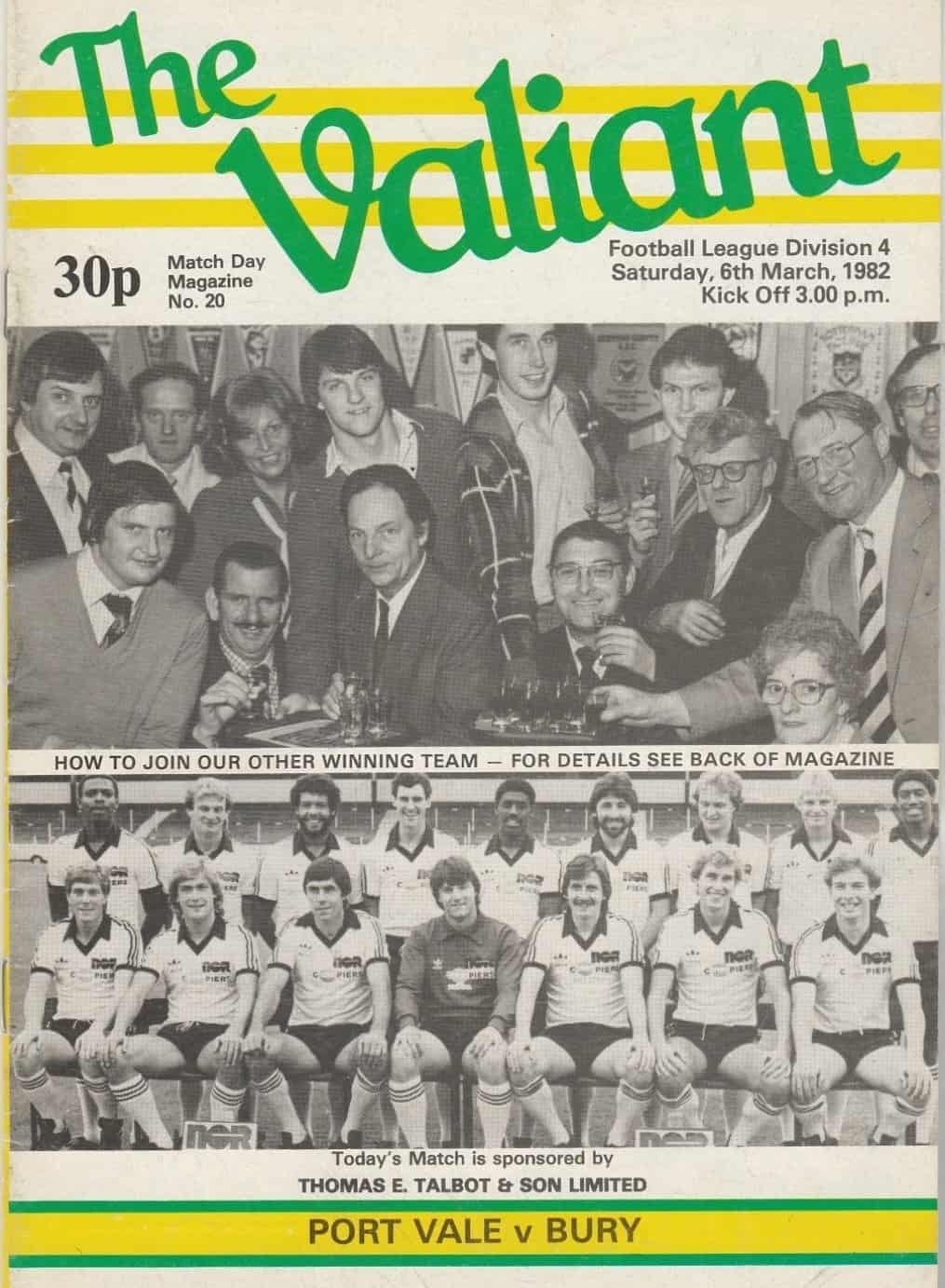 Match: Port Vale v Bury Competition: League Division 4 Date: 06-Mar-1982 Comments: Rating: 4 Condition: Very good Weight in grams: 60