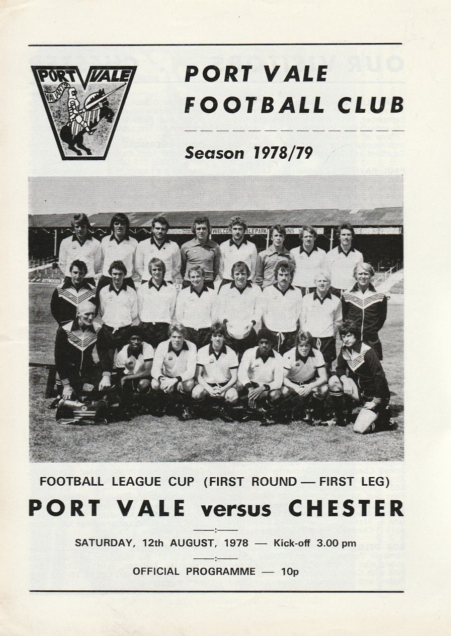 Match: Port Vale v Chester Competition: League Cup 1st Round 1st l;eg Date: 12-Aug-1978 Comments: 4 page issue Rating: 4 Condition: Very good Weight in grams: 80