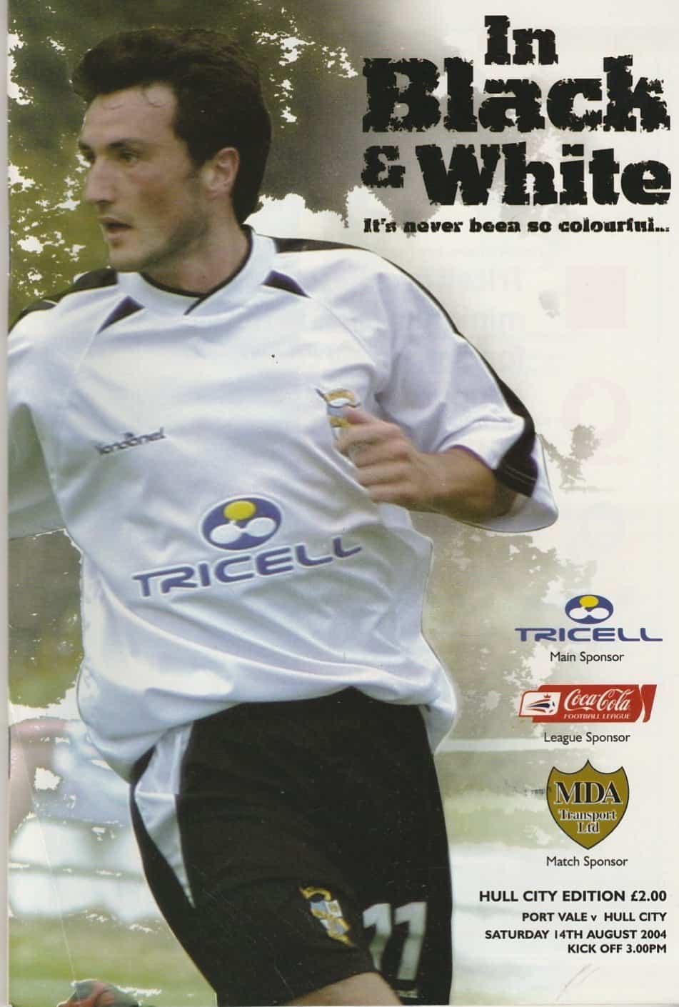 Match: Port Vale v Hull City Competition: League 1 Date: 14-Aug-2004 Comments: Rating: 3 Condition: Two light creases on back page Weight in grams: 140