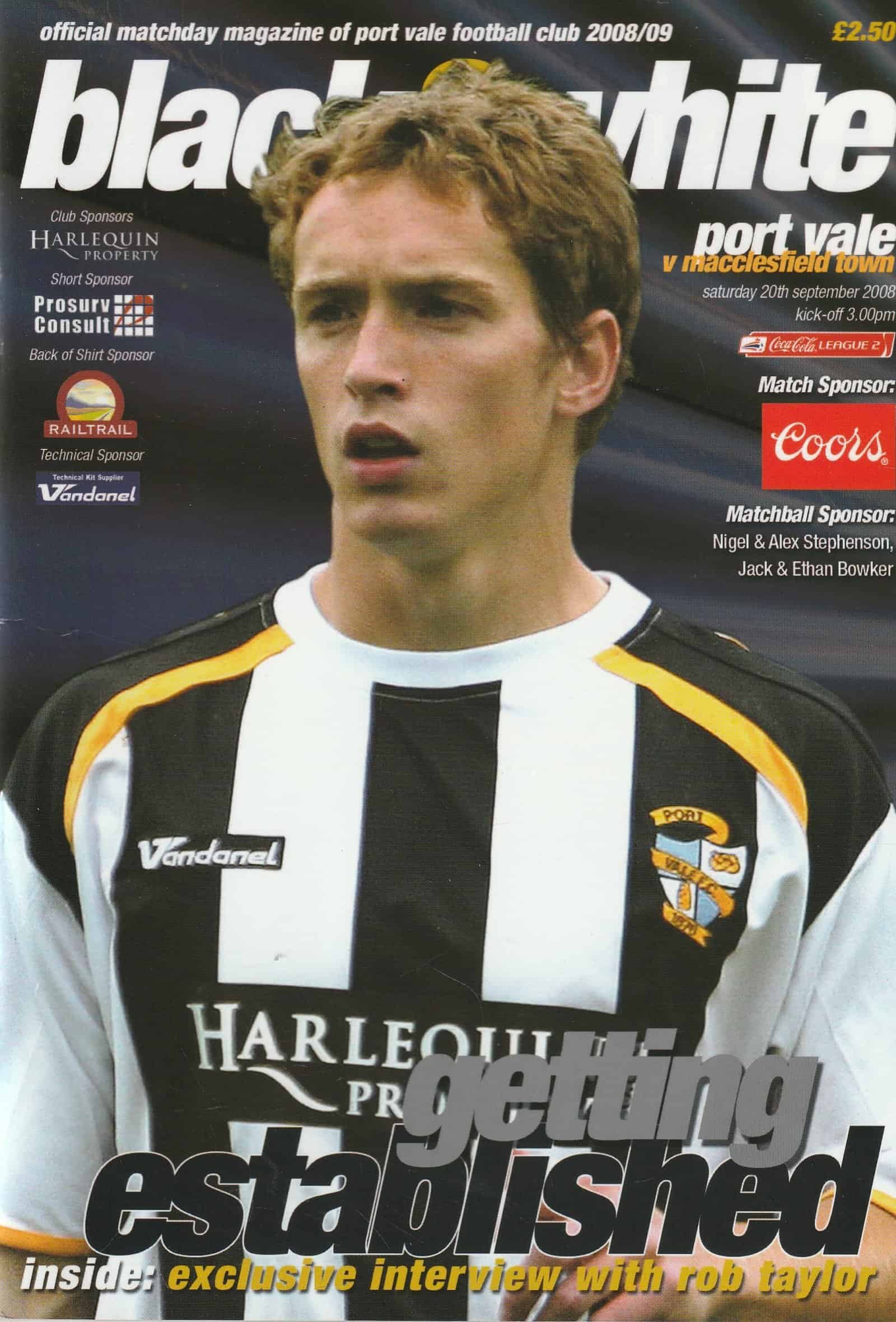 Match: Port Vale v Macclesfield Town Competition: League 2 Date: 20-Sep-2008 Comments: Rating: 4 Condition: Very good Weight in grams: 180