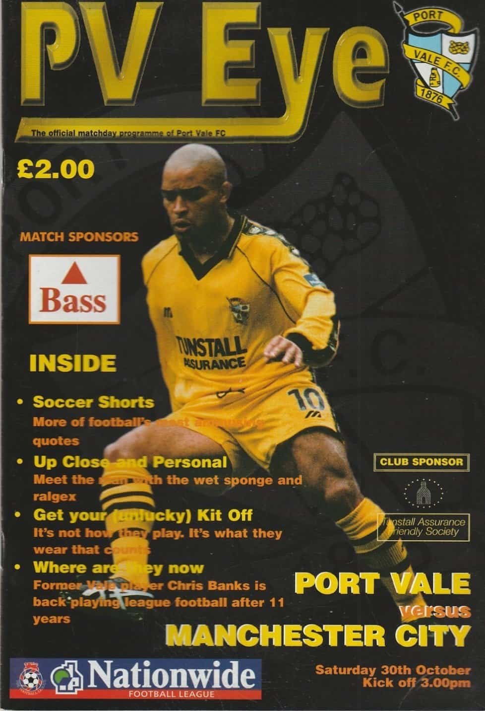 Match: Port Vale v Manchester City Competition: League Division 1 Date: 30-Oct-1999 Comments: Rating: 4 Condition: Very good Weight in grams: 140