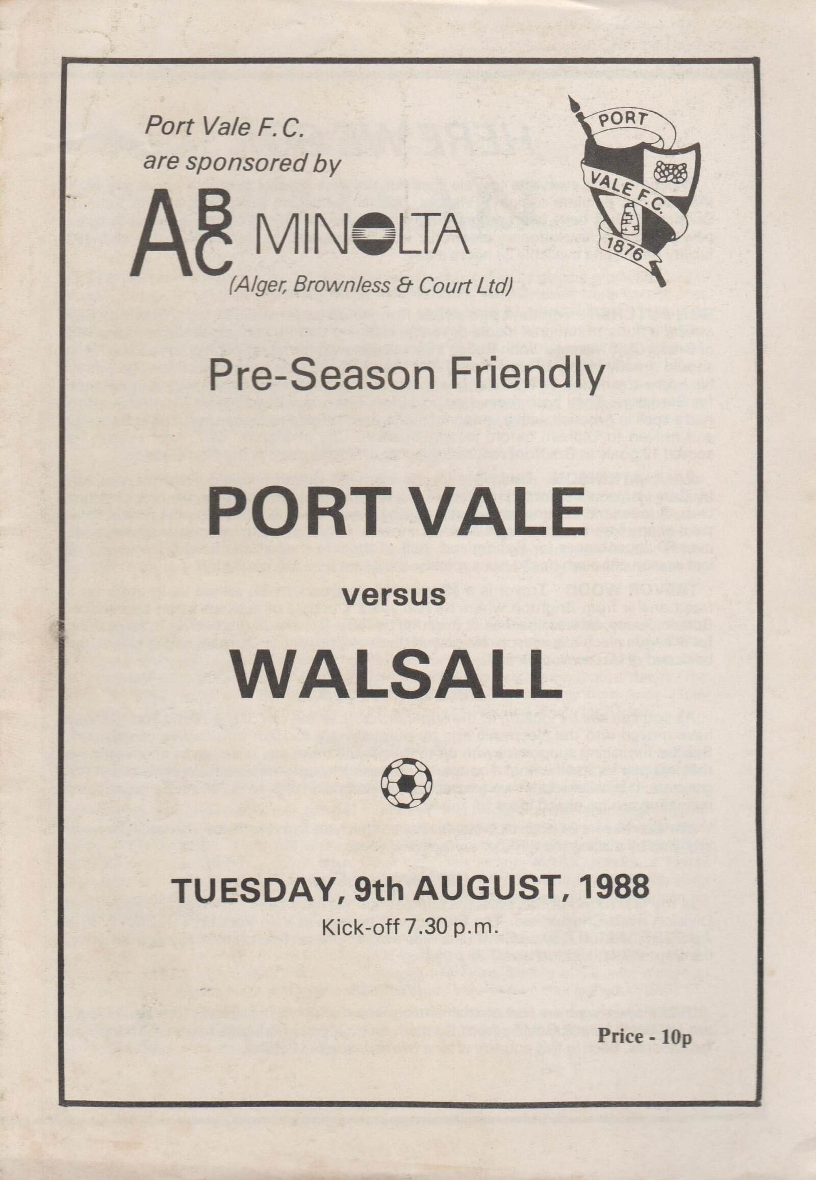 Port Vale v Walsall 09-Aug-1988