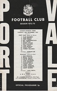 Match: Port Vale v Walsall Competition: League Division 3 Date: 26-12-1972 Comments: Rating: 3 Condition: Fold, rusty staples Weight in grams: 40