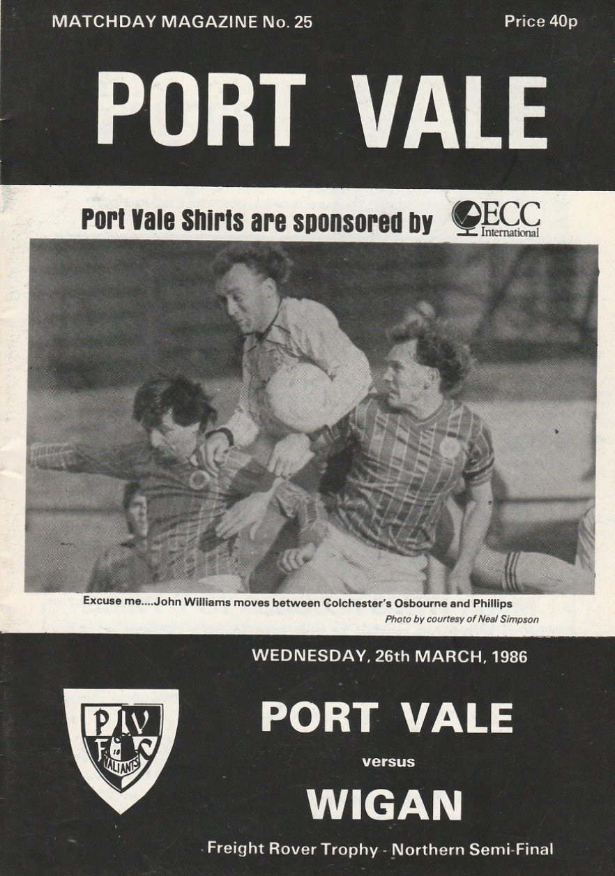 Match: Port Vale v Wigan Athletic Competition: Freight Rover Trophy Semi Final Northern Section Date: 26-Mar-1986 Comments: Rating: 3 Condition: Light soiling on back page Weight in grams: 80