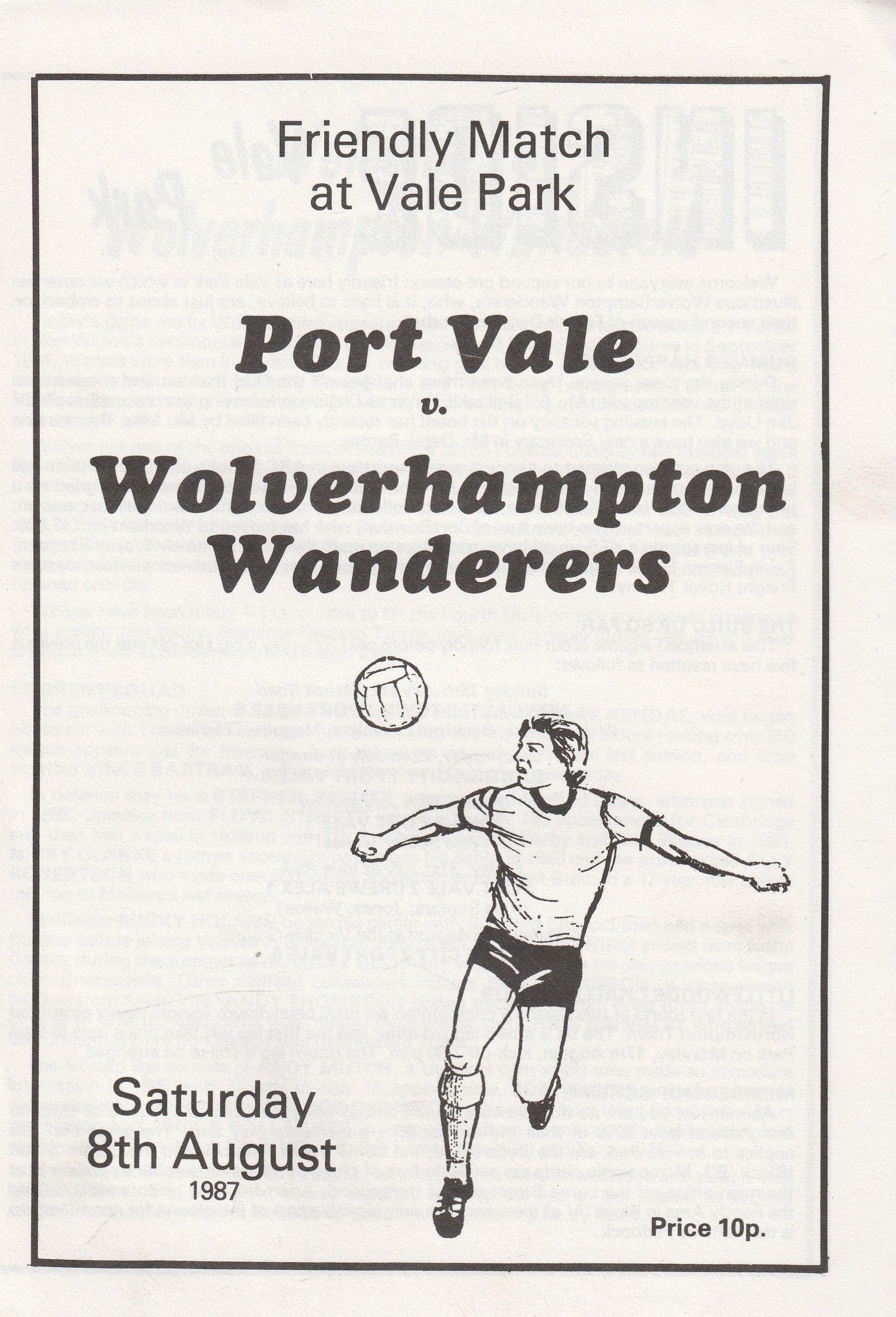 Match: Port Vale v Wolverhampton Wanderers Competition: Friendly Date: 08-Aug-1987 Comments: 4 page issue Rating: 4 Condition: Very good Weight in grams: 40