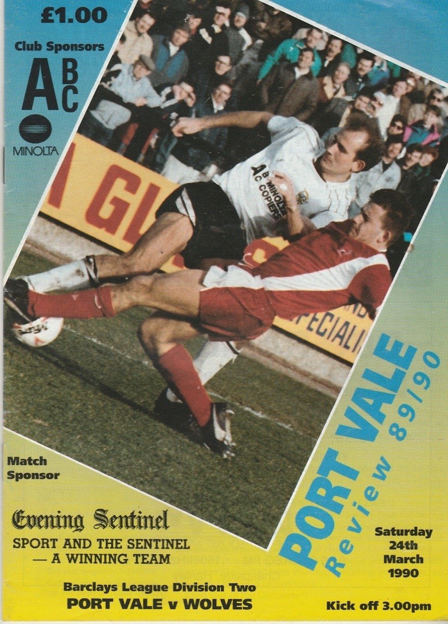 Match: Port Vale v Wolverhampton Wanderers Competition: League Division 3 Date: 24-Mar-1990 Comments: Rating: 4 Condition: Very good Weight in grams: 100