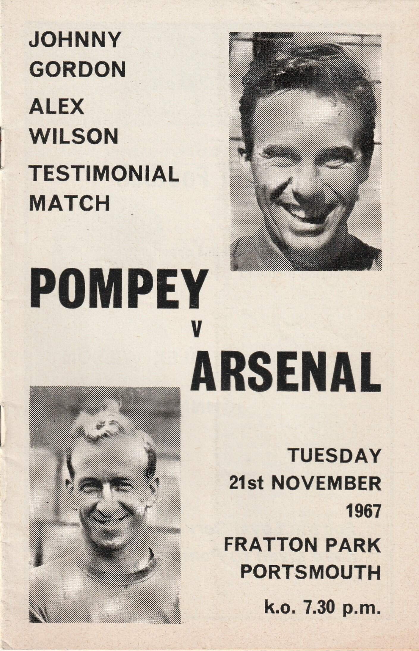 Match: Portsmouth v Arsenal Competition: Friendly Date: 21-Nov-1967 Comments: Johnny Gordon and Alex Wilson Testimonial Match Rating: 4 Condition: Very good Weight in grams: 80