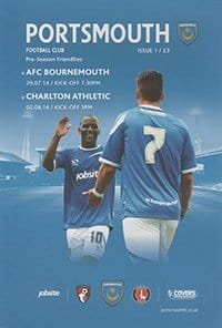 Match: Portsmouth v Charlton Athletic Competition: Friendly Date: 02-08-2014 Comments: Joint issue with Bournemouth game Rating: 5 Condition: Excellent Weight in grams: 260