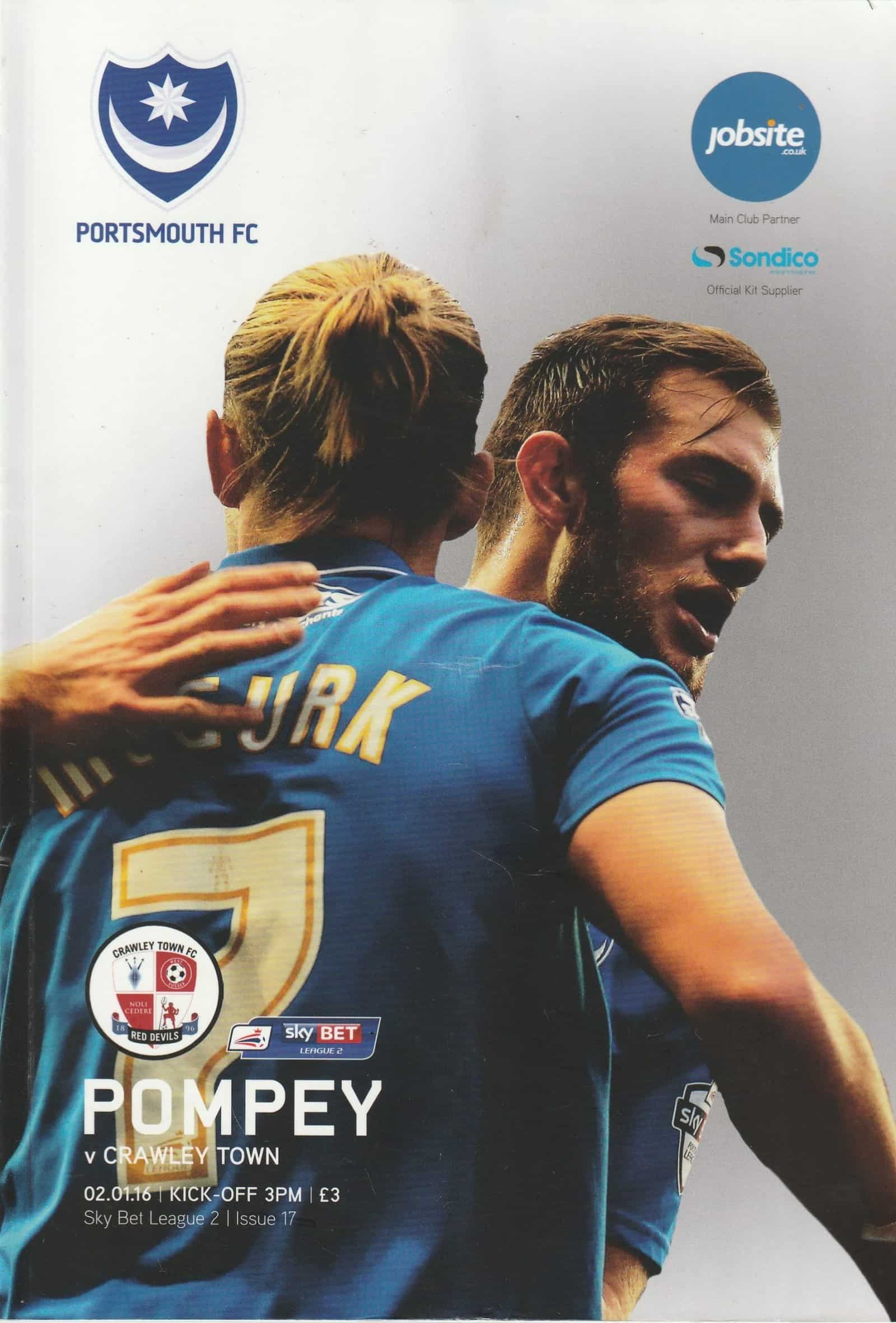 Match: Portsmouth v Crawley Town Competition: League 2 Date: 02-Jan-2016 Comments: Rating: 3 Condition: Fold Weight in grams: 220