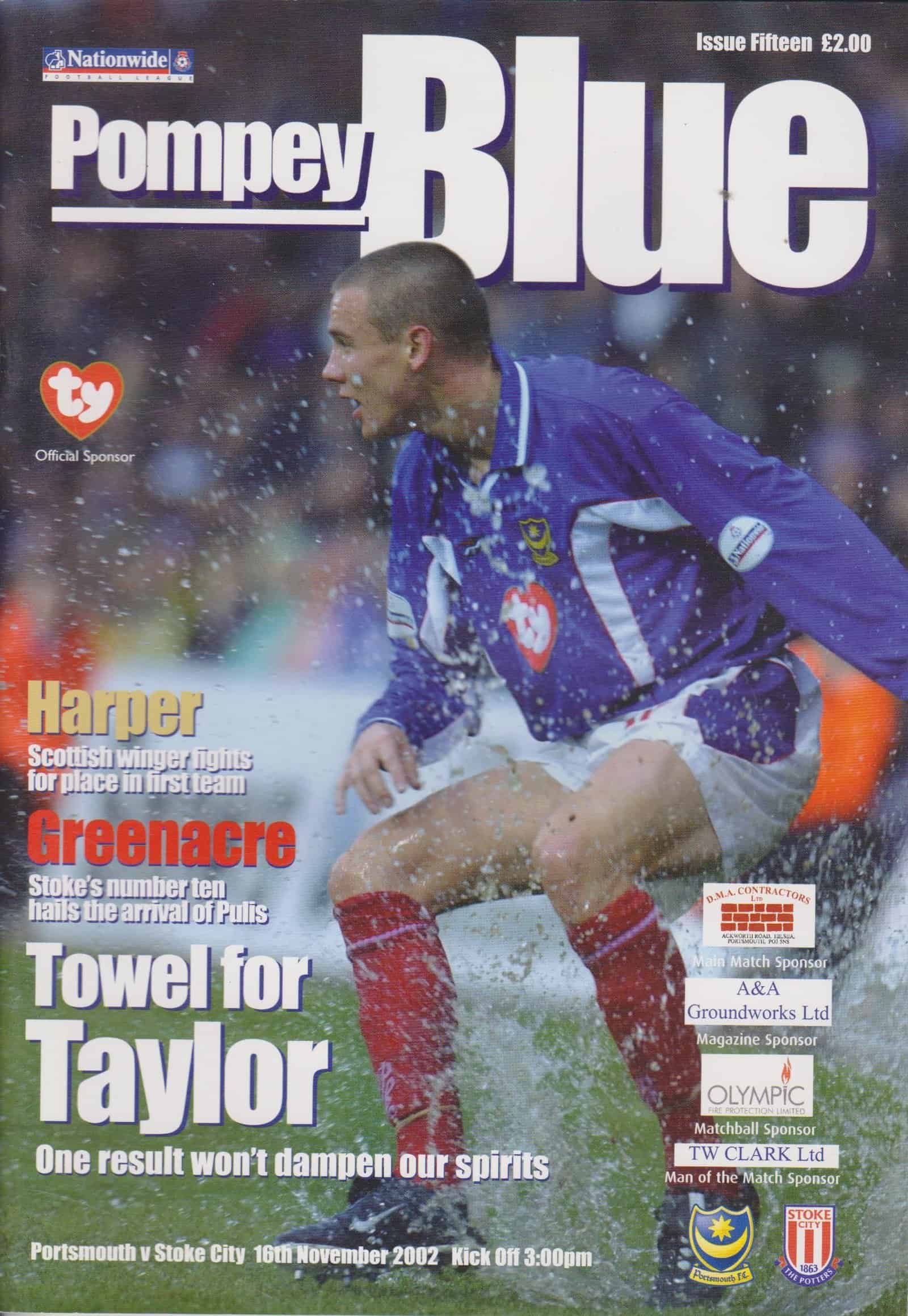 Match: Portsmouth v Stoke City Competition: League Division 1 Date: 16-Nov-2002 Comments: Rating: 4 Condition: Very good Weight in grams: 160