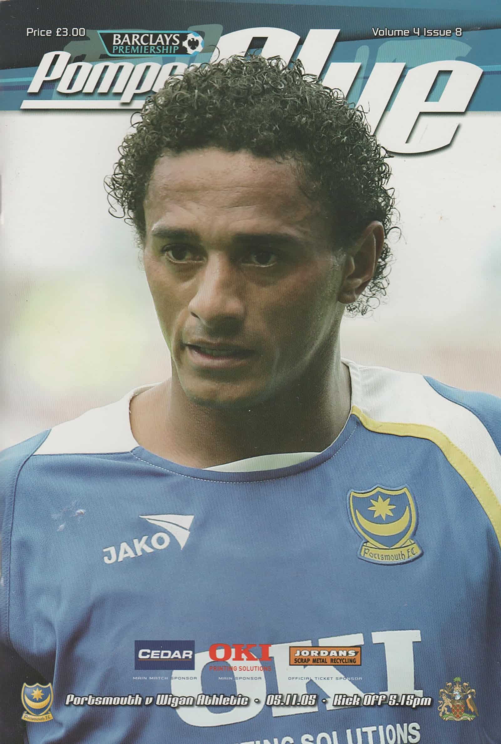 Match: Portsmouth v Wigan Athletic Competition: Premier League Date: 05-11-2005 Comments: Rating: 4 Condition: Very good Weight in grams: 200