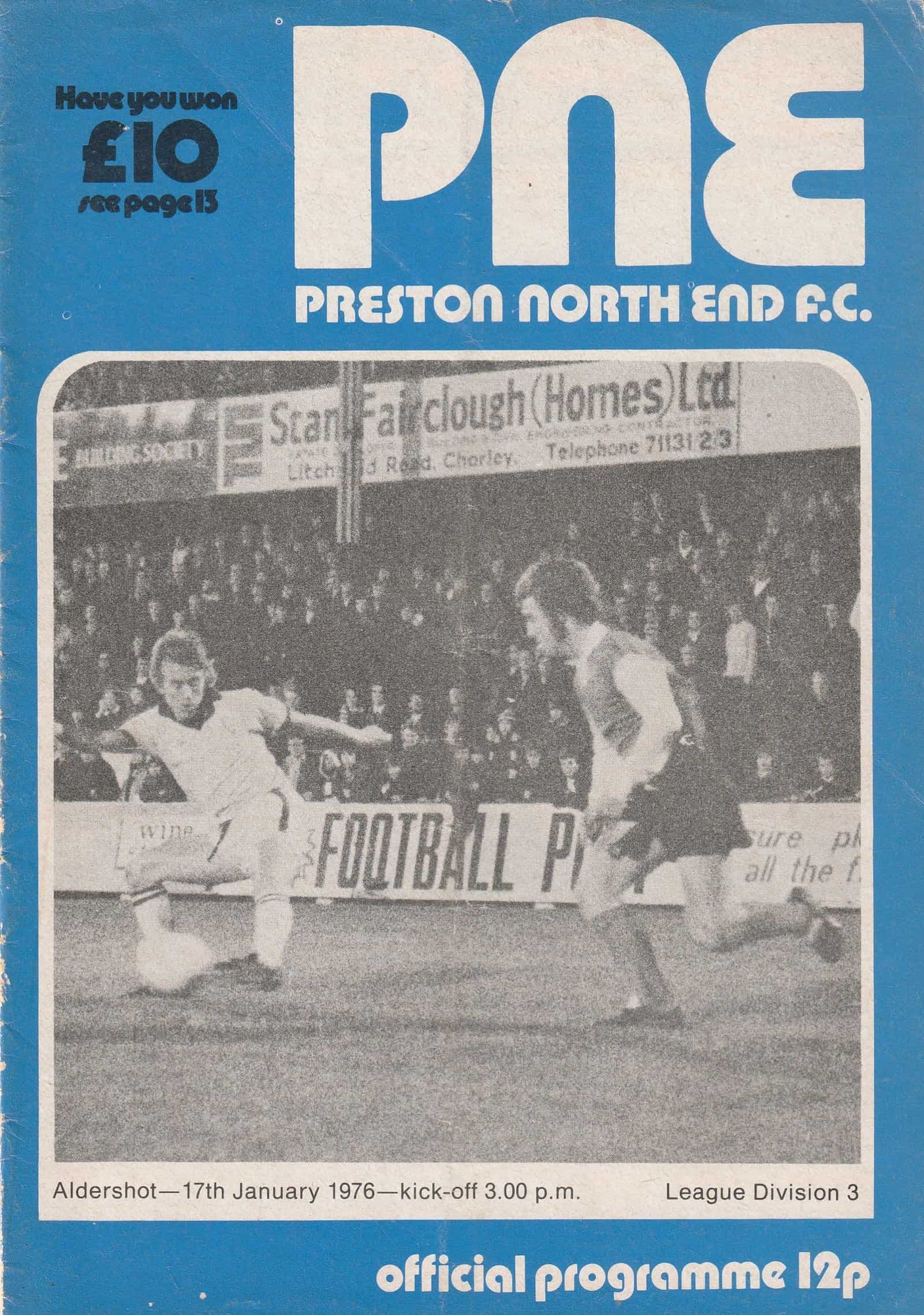 Match: Preston North End v Aldershot Competition: League Division 3 Date: 17-Jan-1976 Comments: Rating: 3 Condition: Light handling wear Weight in grams: 100