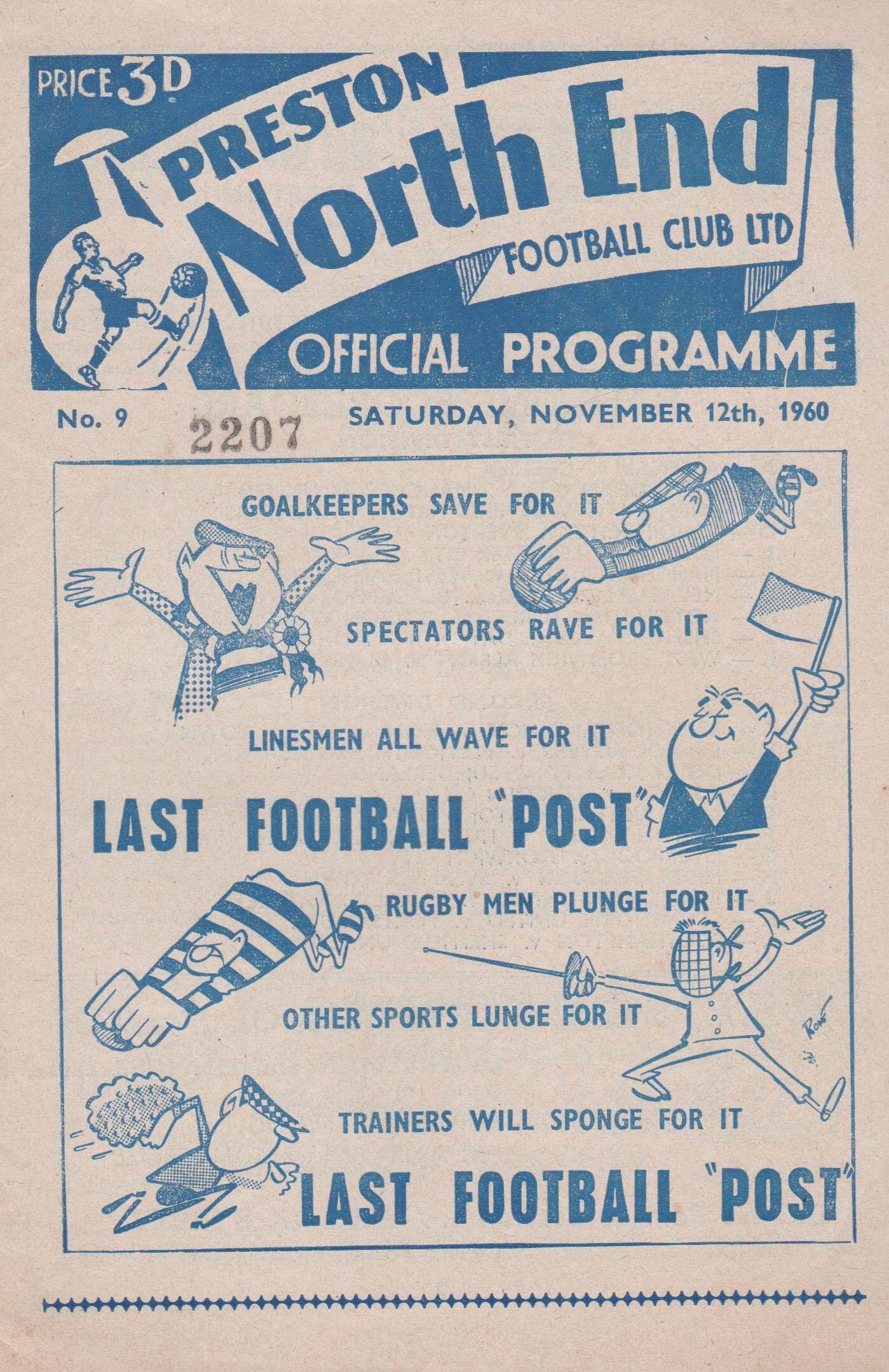 Match: Preston North End v Aston Villa Competition: League Division 2 Date: 12-Nov-1960 Comments: Rating: 4 Condition: Very good Weight in grams: 60