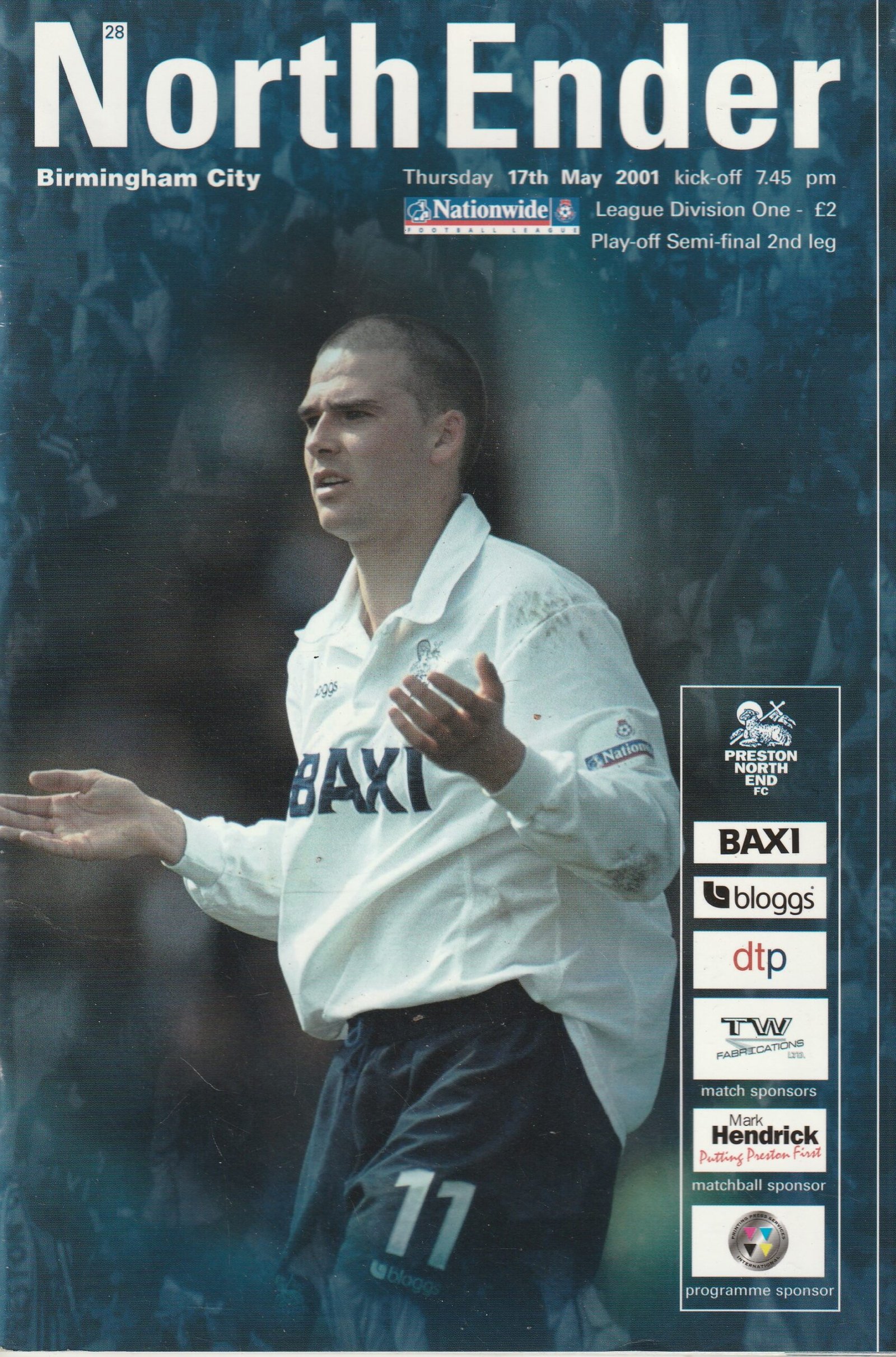 Match: Preston North End v Birmingham City Competition: League Division 1 Play off Semi Final Date: 17-May–2001 Comments: Rating: 4 Condition: Very good Weight in grams: 160