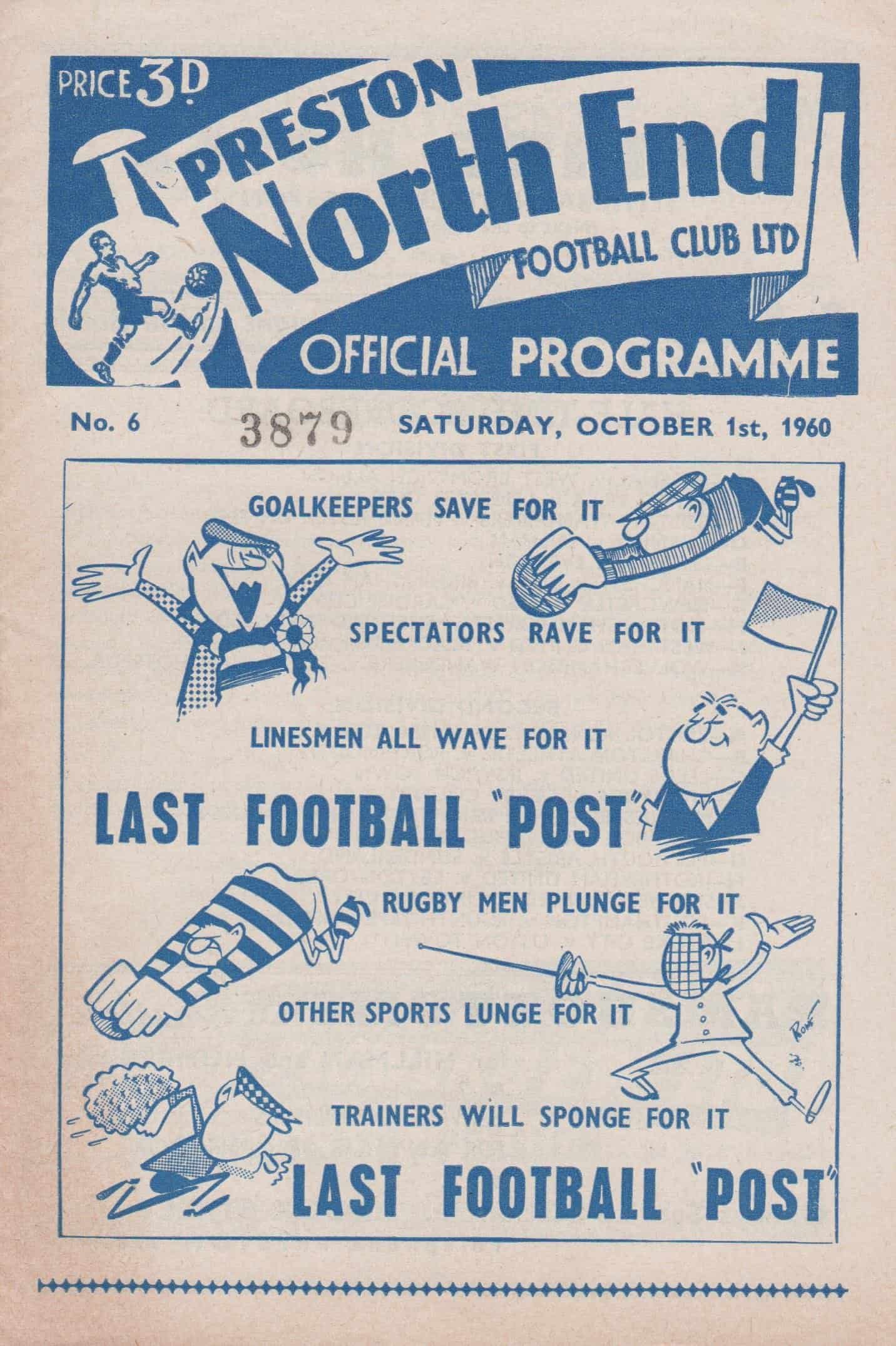 Match: Preston North End v Blackpool Competition: League Division 1 Date: 01-Oct-1960 Comments: Rating: 4 Condition: Very good Weight in grams: 40
