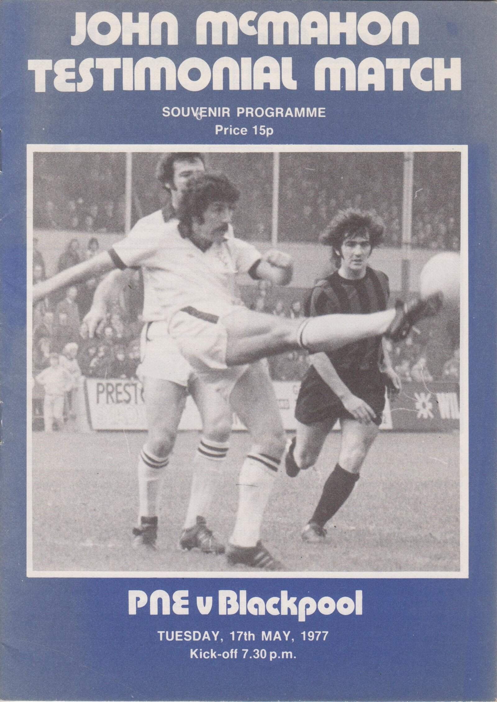 Match: Preston North End v Blackpool Competition: Friendly Date: 17-May-1977 Comments: John McMahon Testimonial Match Rating: 4 Condition: Very good Weight in grams: 60