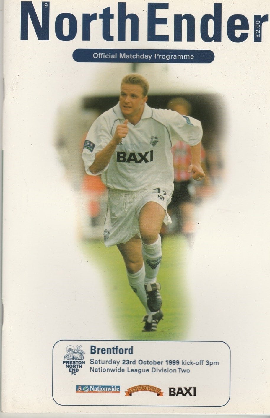Match: Preston North End v Brentford Competition: League Division 2 Date: 23-Oct-1999 Comments: PNE Championship winning season Rating: 4 Condition: Very good Weight in grams: 160