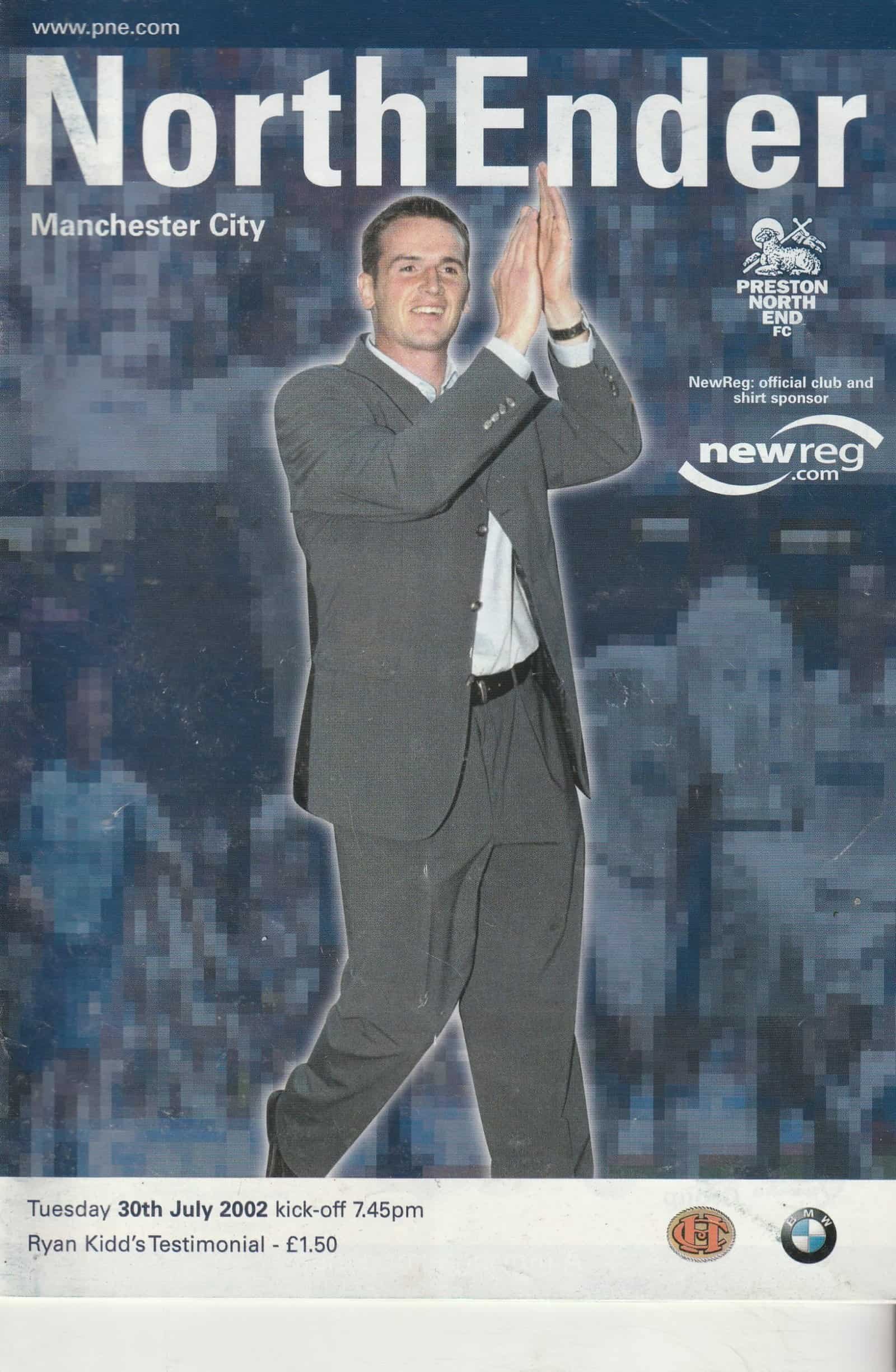 Match: Preston North End v Manchester City Competition: Friendly Date: 30-Jul-2002 Comments: Ryan Kidd Testimonial Match Rating: 3 Condition: Light handling marks on cover Weight in grams: 80