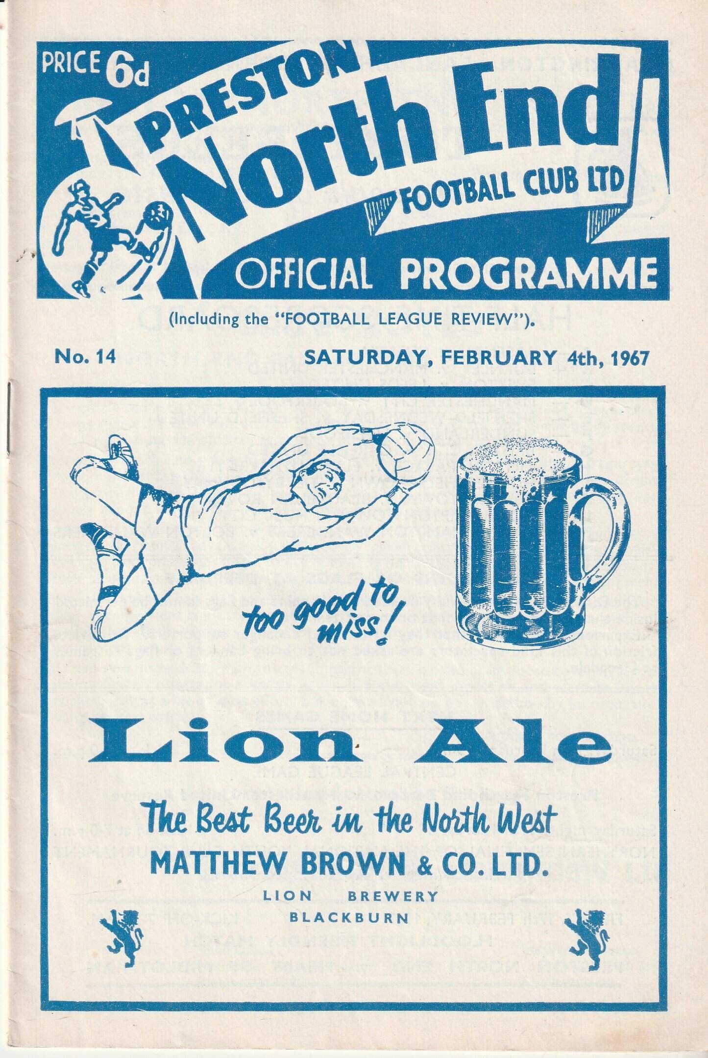 Match: Preston North End v Norwich City Competition: League Division 2 Date: 04-Feb-1967 Comments: Rating: 4 Condition: Very good Weight in grams: 40