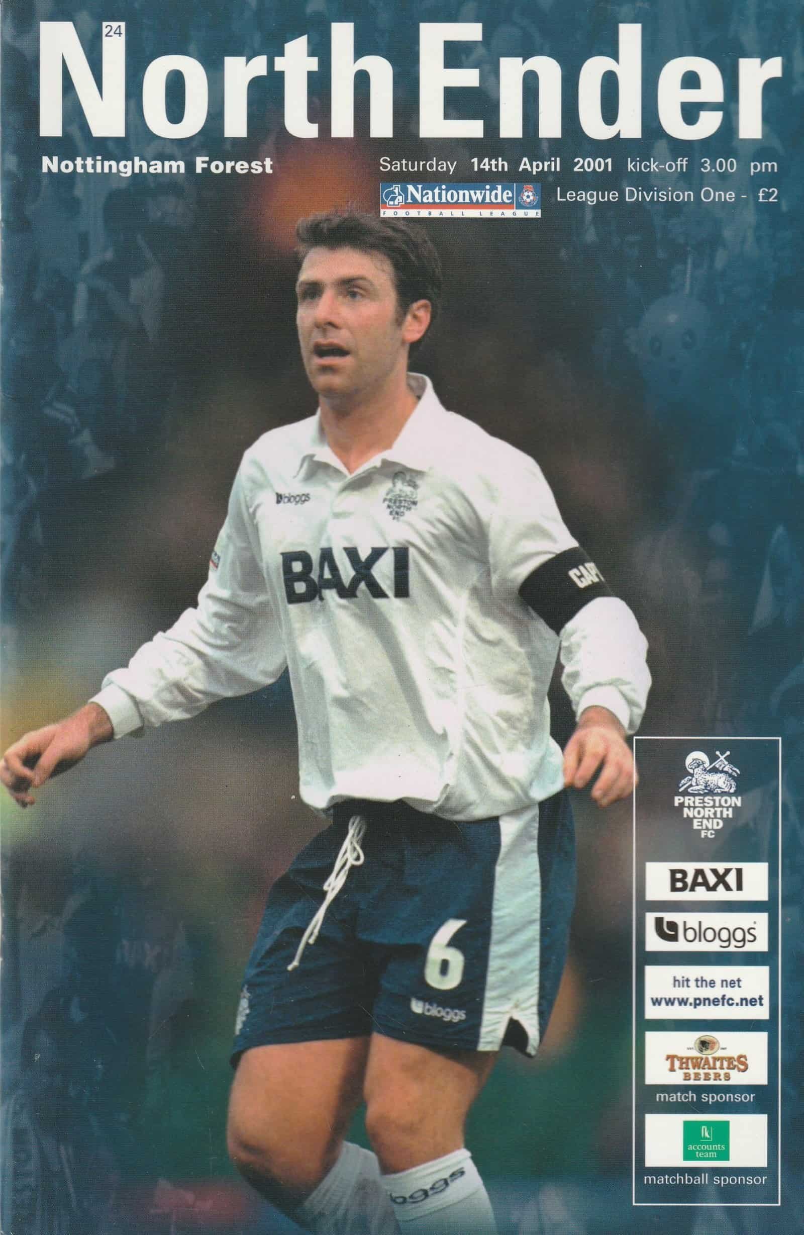 Match: Preston North End v Nottingham Forest Competition: League Division 1 Date: 14-Apr-2001 Comments: Rating: 4 Condition: Very good Weight in grams: 160