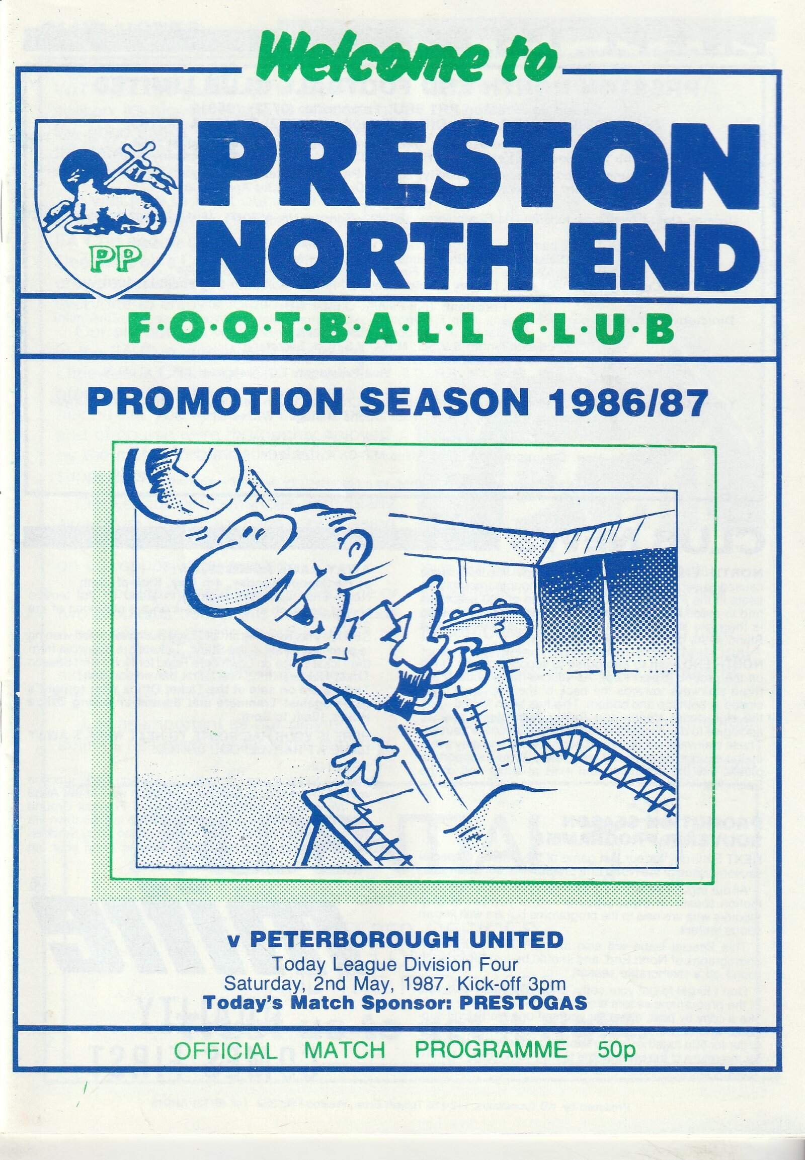Match: Preston North End v Peterborough United Competition: League Division 4 Date: 02-May-1987 Comments: PNE promotion season Rating: 4 Condition: Very good Weight in grams: 100