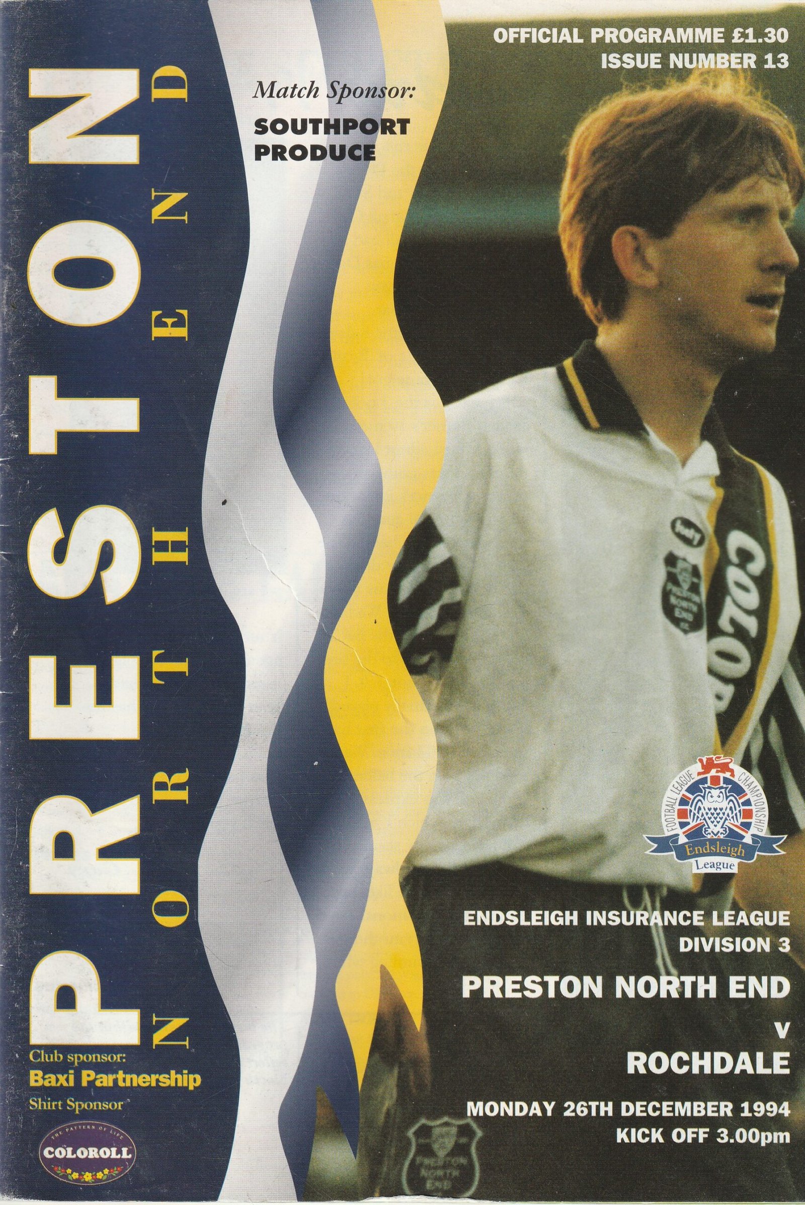 Match: Preston North End v Rochdale Competition: League Division 3 Date: 26-Dec-1994 Comments: Rating: 4 Condition: Very good Weight in grams: 160