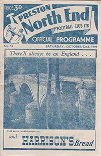 Match: Preston North End v Sheffield Wednesday Competition: League Division 2 Date: 22-10-1949 Comments: Rating: 3 Condition: Rusty staples, folds Weight in grams: 40